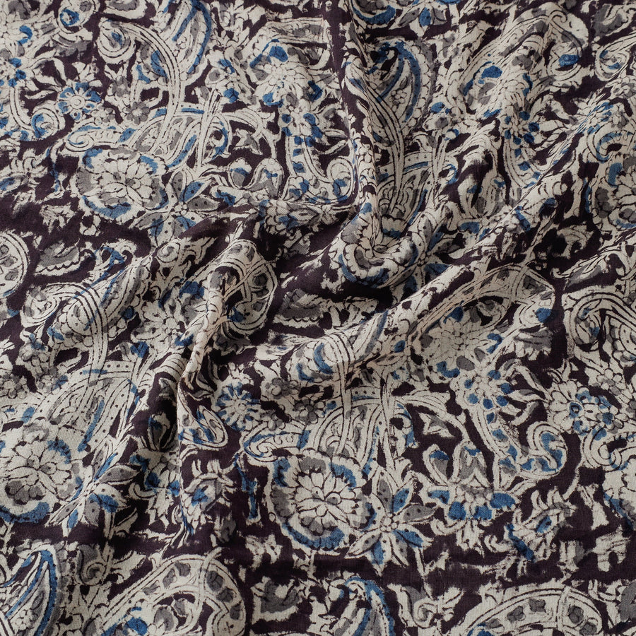 This mul cotton fabric is skillfully crafted by the artisans of Pedana using traditional kalamkari block printing techniques. It showcases an assortment of hand-printed motifs inspired by the traditional kalamkari painting. The fabric is naturally dyed and of fine quality. Kalamkari is one of the earliest and most complex techniques of block printing.