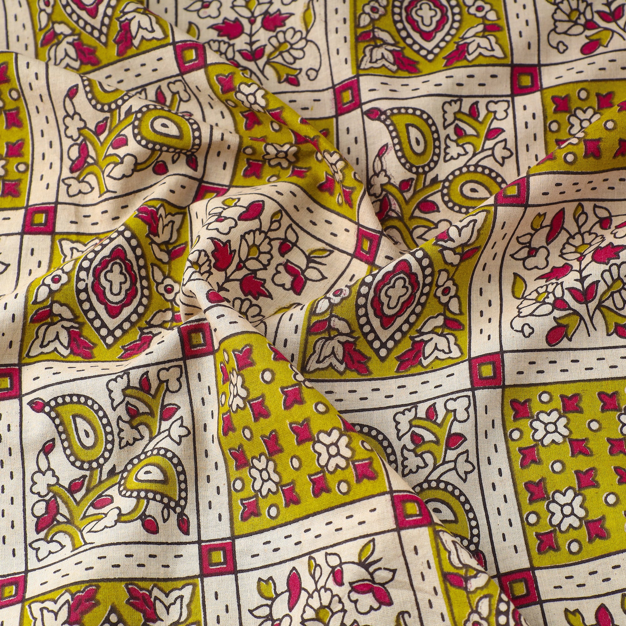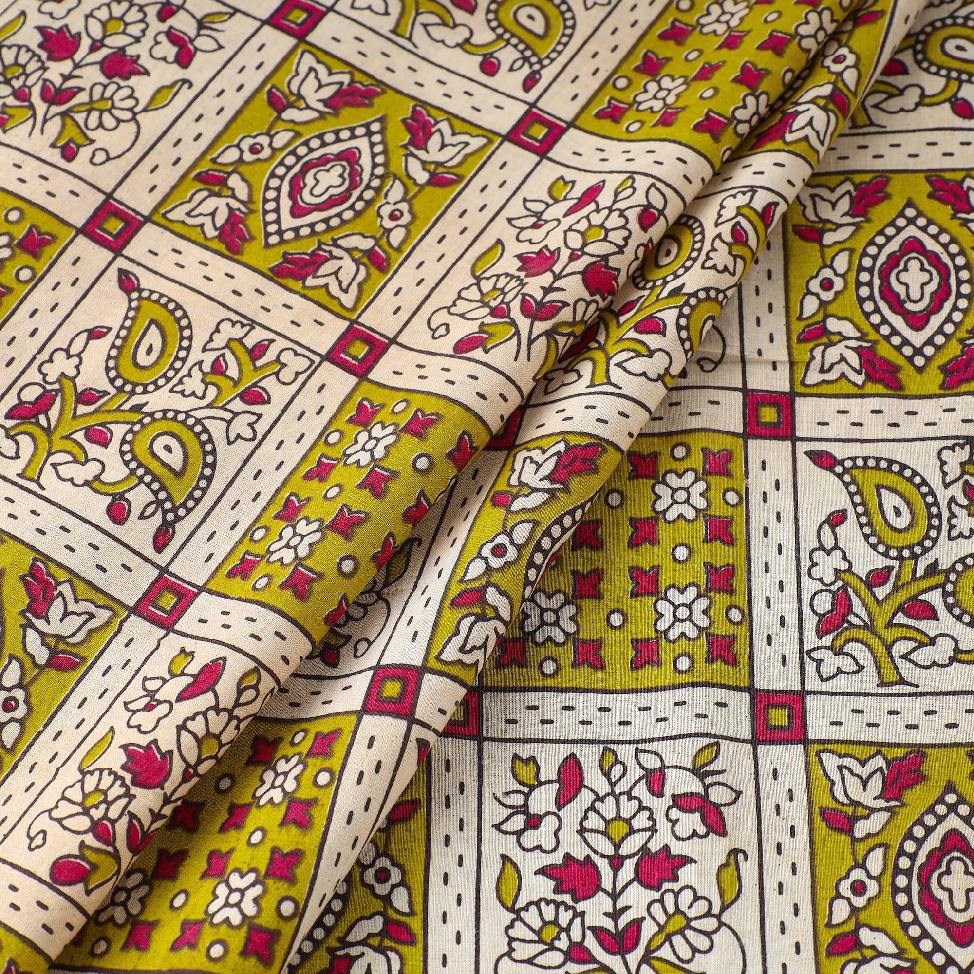 Elevate your creations with our kalamkari-printed cotton fabric, skillfully crafted by the artisans of Tamil Nadu. Kalamkari is the earliest and more complex technique of printing; this fabric showcases intricate screen-painted motifs on high-quality cotton. Embrace tradition and creativity with this fabric that seamlessly blends cultural richness with contemporary style.