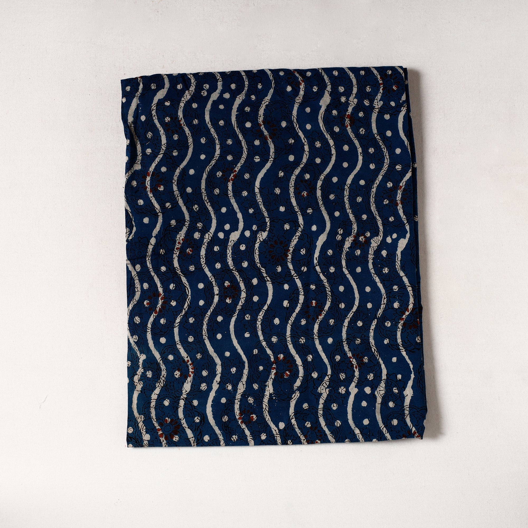 Fine quality blue bagru dabu hand block printed natural dyed pure cotton precut fabric, made using natural dyes through traditional mud resist process by using hand carved wooden block practiced in Bagru, Rajasthan. Perfect for crafting elegant blouses, bags, decorative items, etc., this exquisite textile symbolizes timeless sophistication, adding a touch of elegance to any wardrobe.