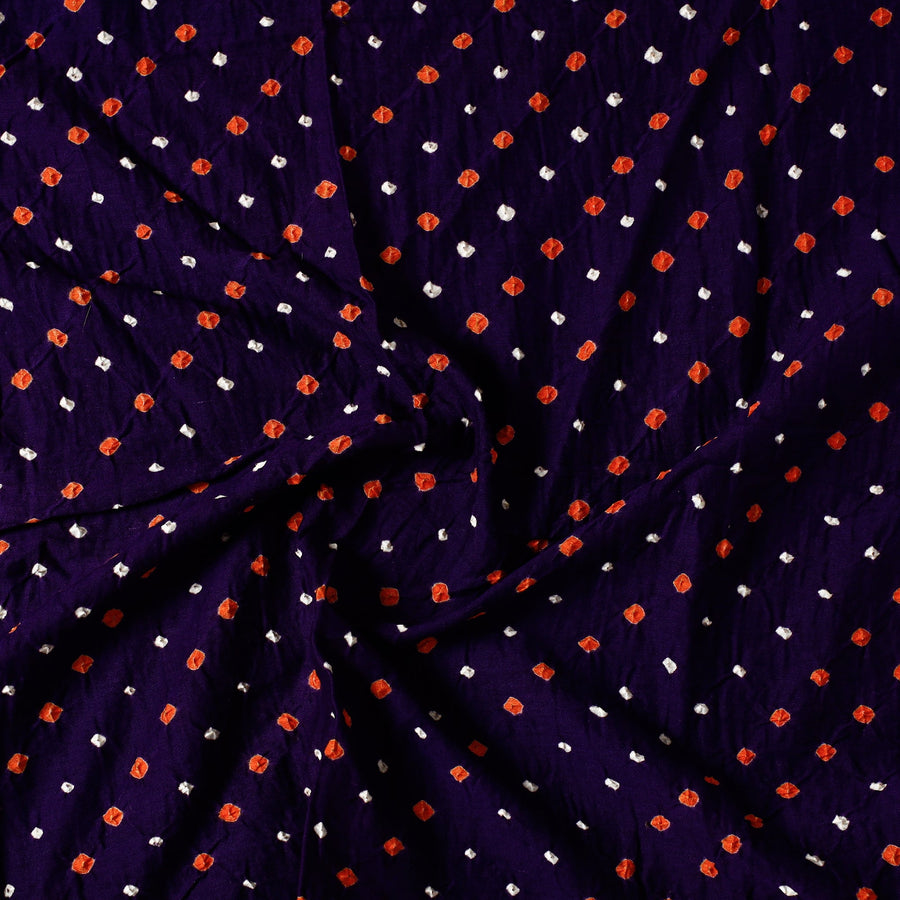 Fine-quality blue bandhani tie-dye cotton precut fabric. Featuring a majestic bandhani pattern, this fabric is hand-tied and dyed using the traditional technique practiced by the artisans of Kutch. Perfect for crafting elegant blouses, bags, decorative items, etc., this exquisite textile symbolizes timeless sophistication, adding a touch of elegance to any wardrobe.