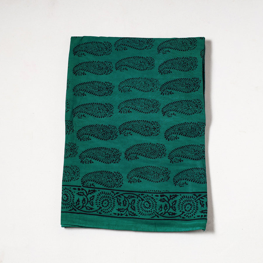 Fine-quality green bagh hand block-printed cotton precut fabric, made using natural dyes through the traditional process of hand block printing by Umar Faruk Khatri, practiced in Bagh, the Dhar district of Madhya Pradesh. Perfect for crafting elegant blouses, bags, decorative items, etc., this exquisite textile symbolizes timeless sophistication, adding a touch of elegance to any wardrobe.