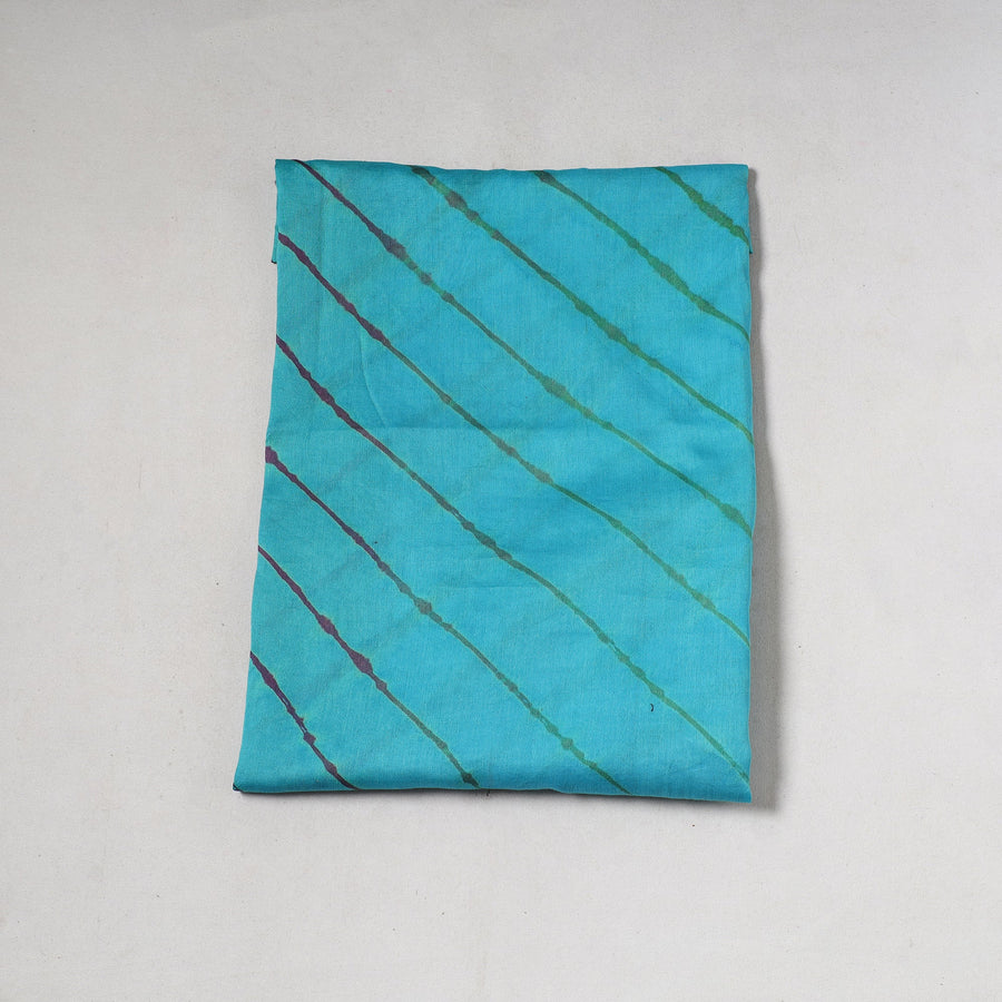 This is a good quality blue leheriya tie-dye chanderi silk-cotton precut fabric. The wavy pattern on this fabric has been dyed using the Leheriya tie and dye technique through a traditional process by the master artisan family of Badshah Mian of Rajasthan state. Perfect for crafting elegant blouses, bags, decorative accessories and more, this exquisite fabric is the epitome of timeless sophistication, adding a touch of elegance to any wardrobe. Its vibrant colors and intricate patterns make every creation a masterpiece, reflecting the rich heritage of Indian textiles.