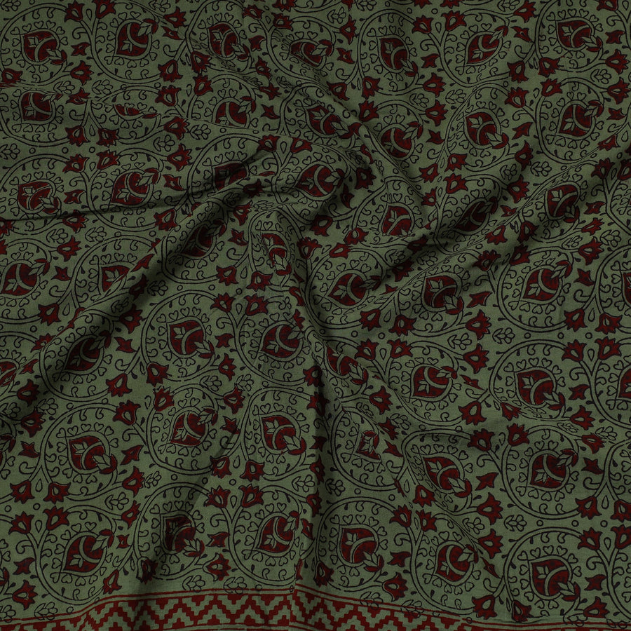 Fine-quality green bagh hand block-printed cotton precut fabric, made using natural dyes through the traditional process of hand block printing by Umar Faruk Khatri, practiced in Bagh, the Dhar district of Madhya Pradesh. Perfect for crafting elegant blouses, bags, decorative items, etc., this exquisite textile symbolizes timeless sophistication, adding a touch of elegance to any wardrobe.