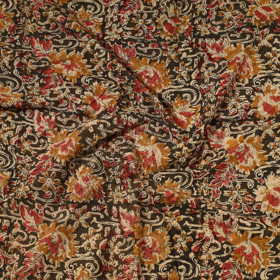 This fine-quality brown kalamkari block-printed cotton precut fabric is made using natural dyes through the traditional process of hand block printing practiced by the artisans of Andhra Pradesh. Perfect for crafting elegant blouses, bags, decorative items, etc., this exquisite textile symbolizes timeless sophistication, adding a touch of elegance to any wardrobe.
