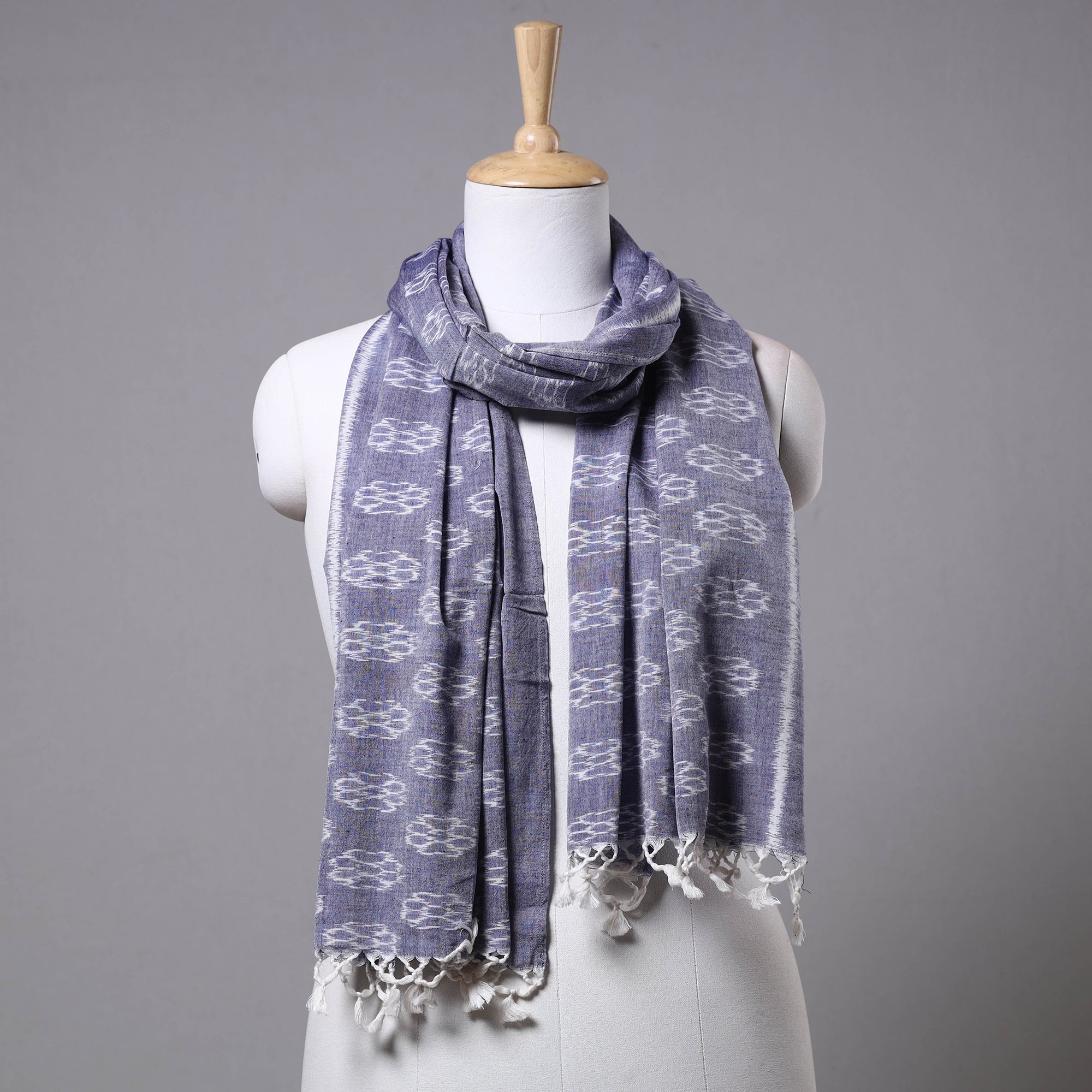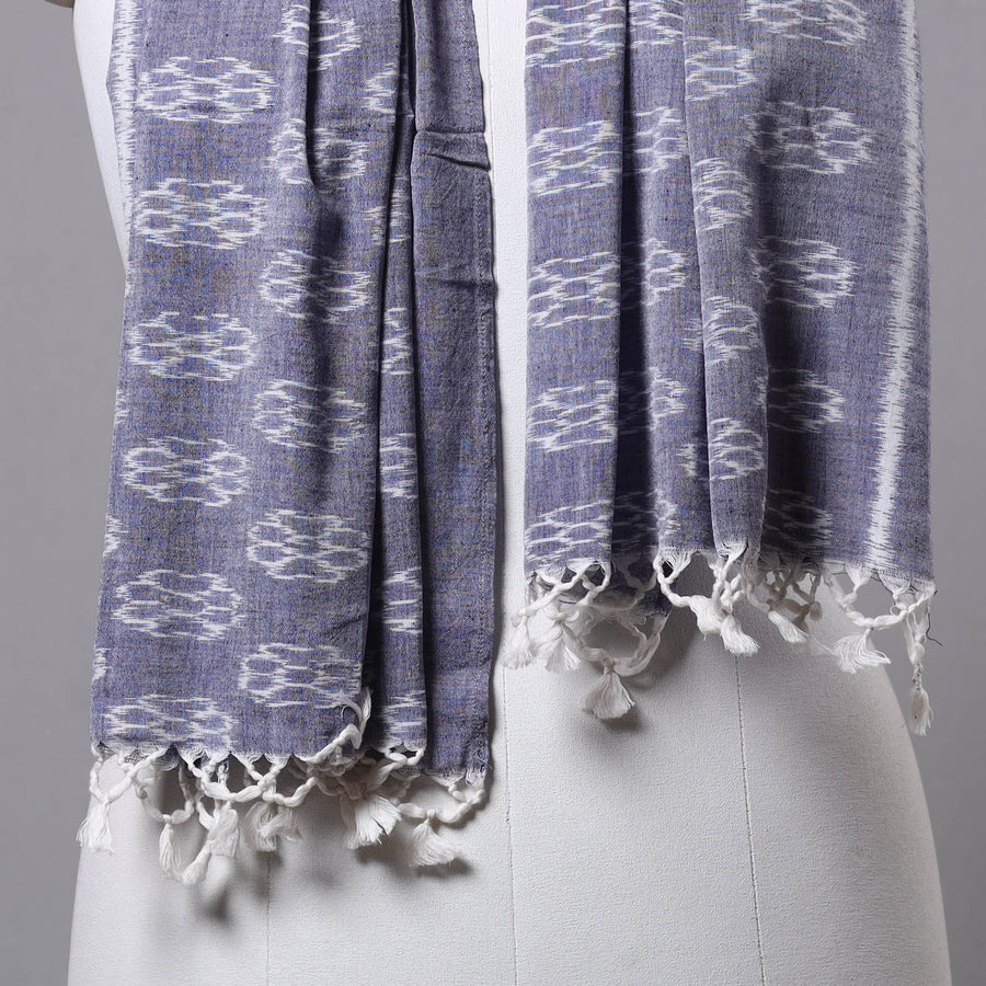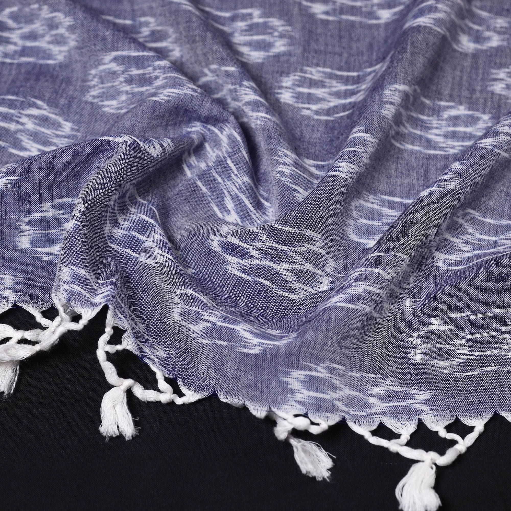 This maniabandha ikat weaving handloom cotton stole with tassels is a traditional textile product from Odisha, a state in India known for its rich handloom weaving heritage. "Maniabandha" refers to the specific style of ikat weaving technique used to create this stole. Ikat is a dyeing and weaving process where the yarns are resist-dyed before they are woven into fabric. The stole is woven on a traditional handloom, where skilled weavers carefully interlace the dyed yarns to create the fabric.