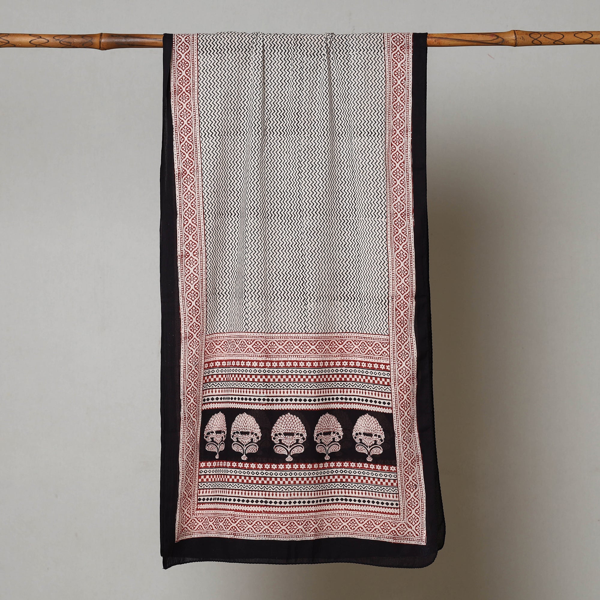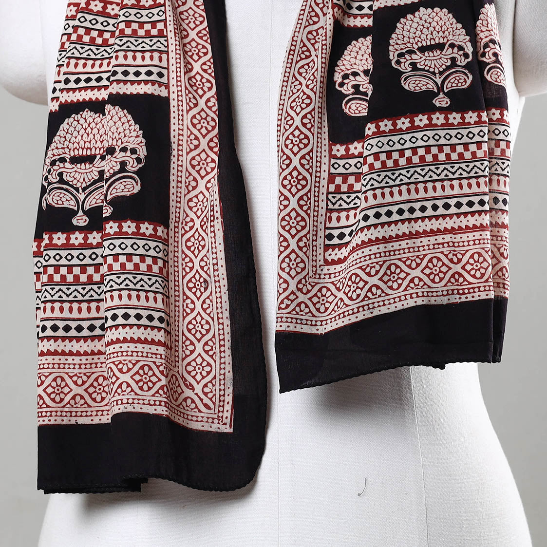 Elevate your style with the special black bagh block printed cotton stole crafted by the skilled artisan Bilal Khatri. This stole is a masterpiece created using natural dyes and the traditional handblock printing technique practiced in Bagh, Madhya Pradesh. Made with exquisite attention to detail, the stole showcases the beauty of natural dyed cotton and adds a touch of elegance to your everyday attire, leaving a lasting impression wherever you go.