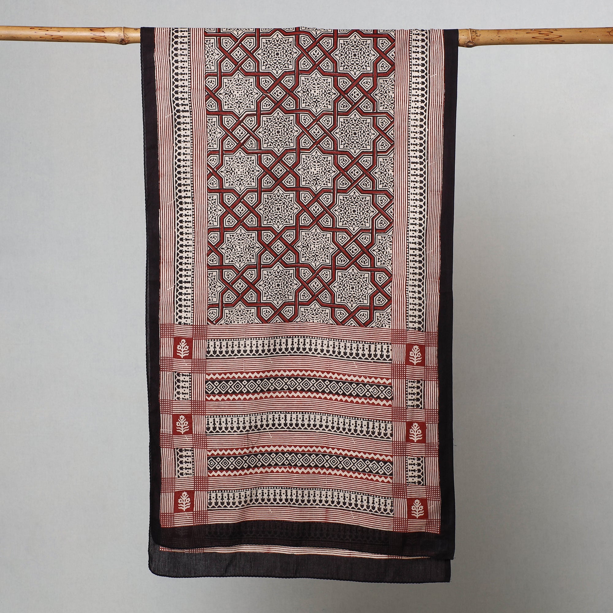 Elevate your style with the special red bagh block printed cotton stole crafted by the skilled artisan Bilal Khatri. This stole is a masterpiece created using natural dyes and the traditional handblock printing technique practiced in Bagh, Madhya Pradesh. Made with exquisite attention to detail, the stole showcases the beauty of natural dyed cotton and adds a touch of elegance to your everyday attire, leaving a lasting impression wherever you go.