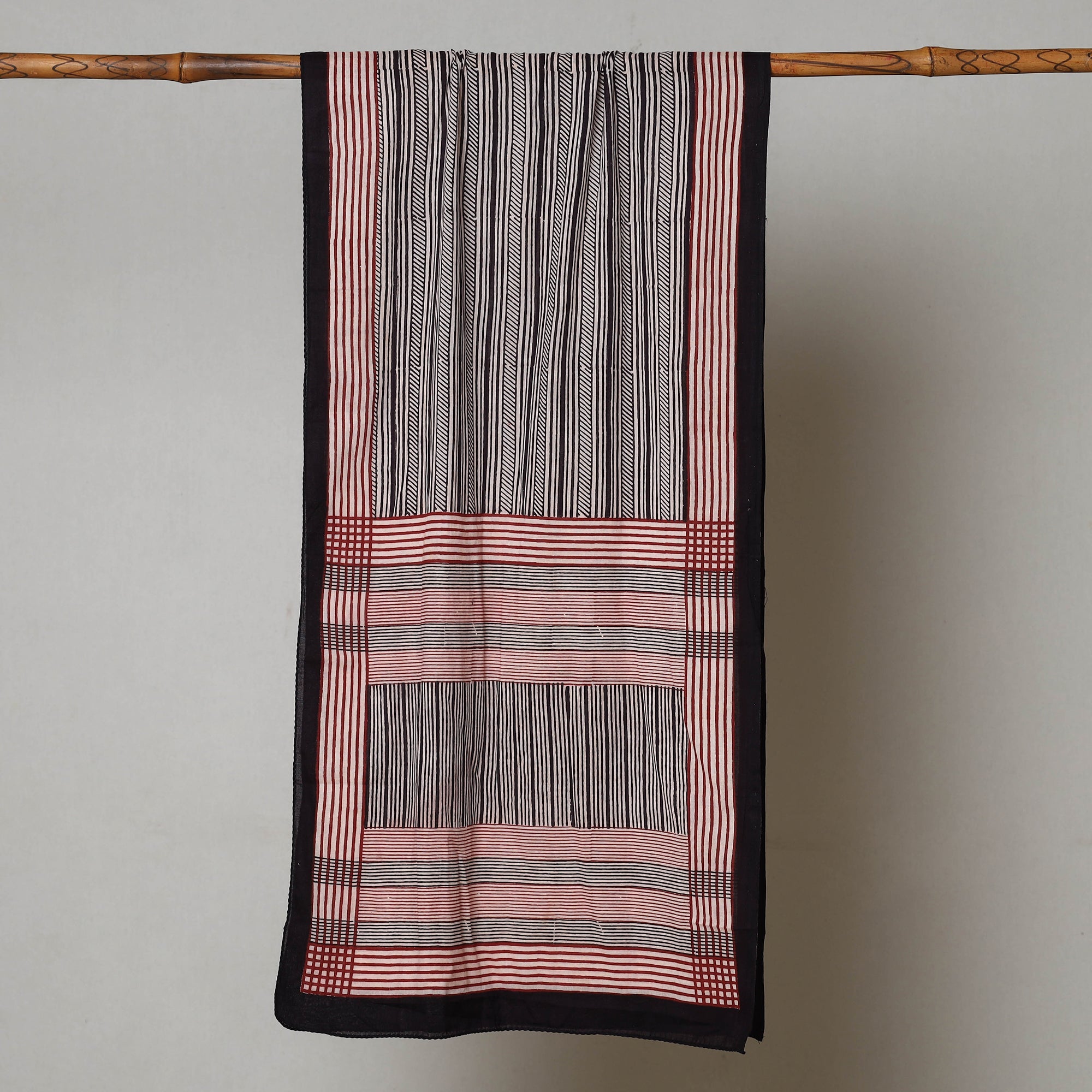 • Black - bagh hand printed cotton stole - handcrafted