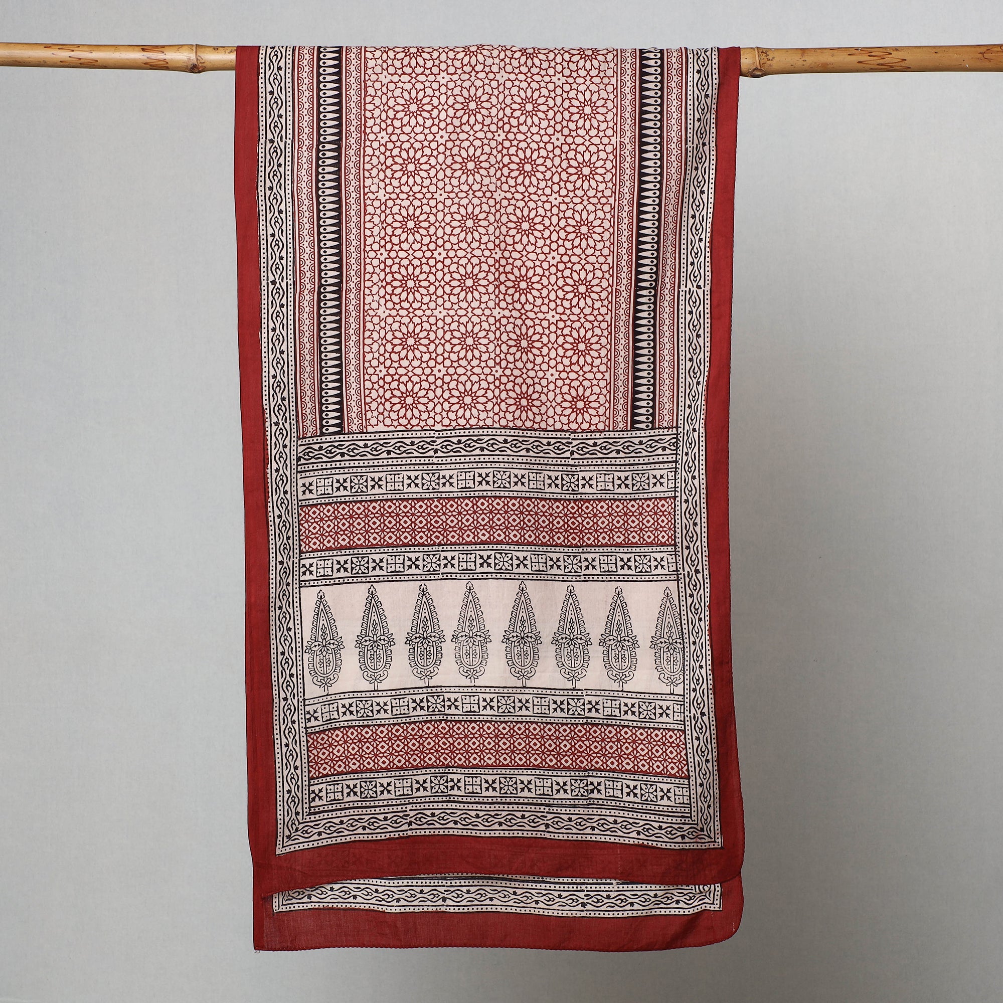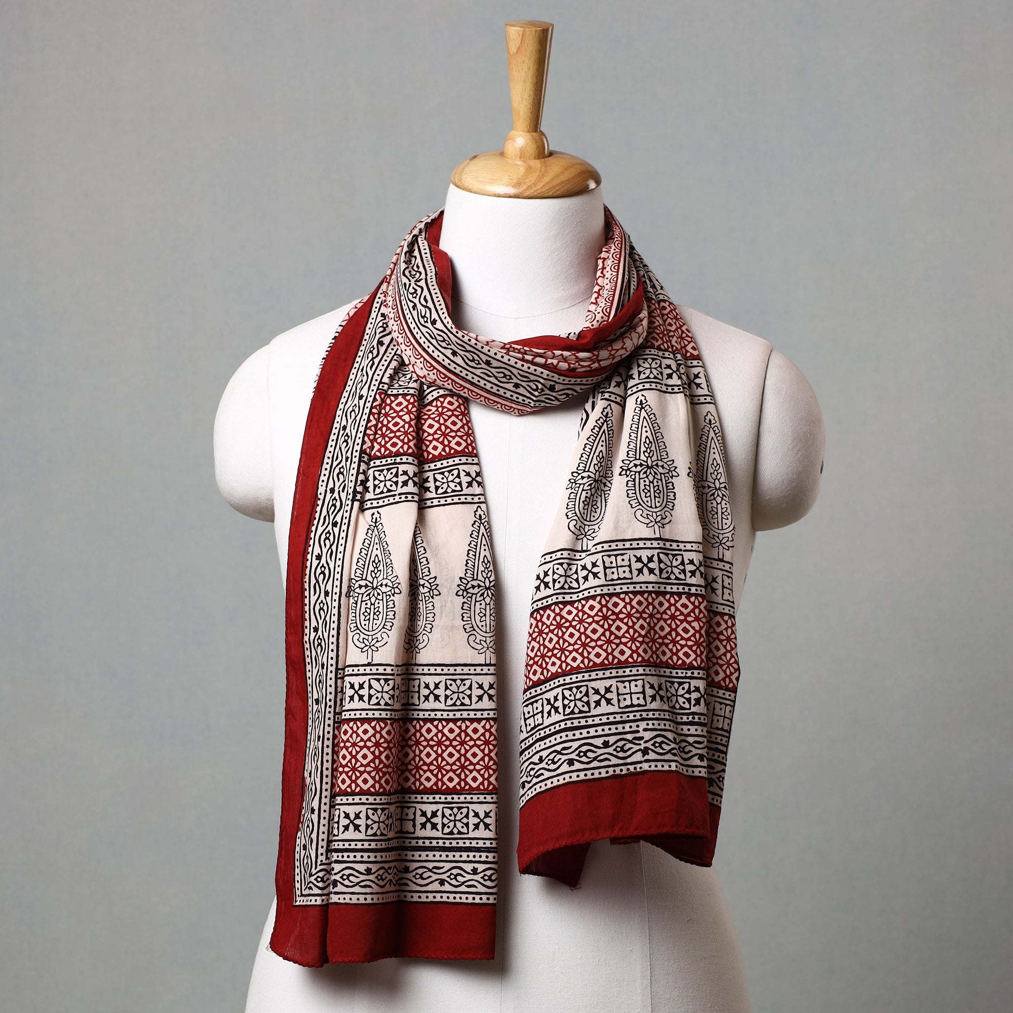 Elevate your style with the special red bagh block printed cotton stole crafted by the skilled artisan Bilal Khatri. This stole is a masterpiece created using natural dyes and the traditional handblock printing technique practiced in Bagh, Madhya Pradesh. Made with exquisite attention to detail, the stole showcases the beauty of natural dyed cotton and adds a touch of elegance to your everyday attire, leaving a lasting impression wherever you go.