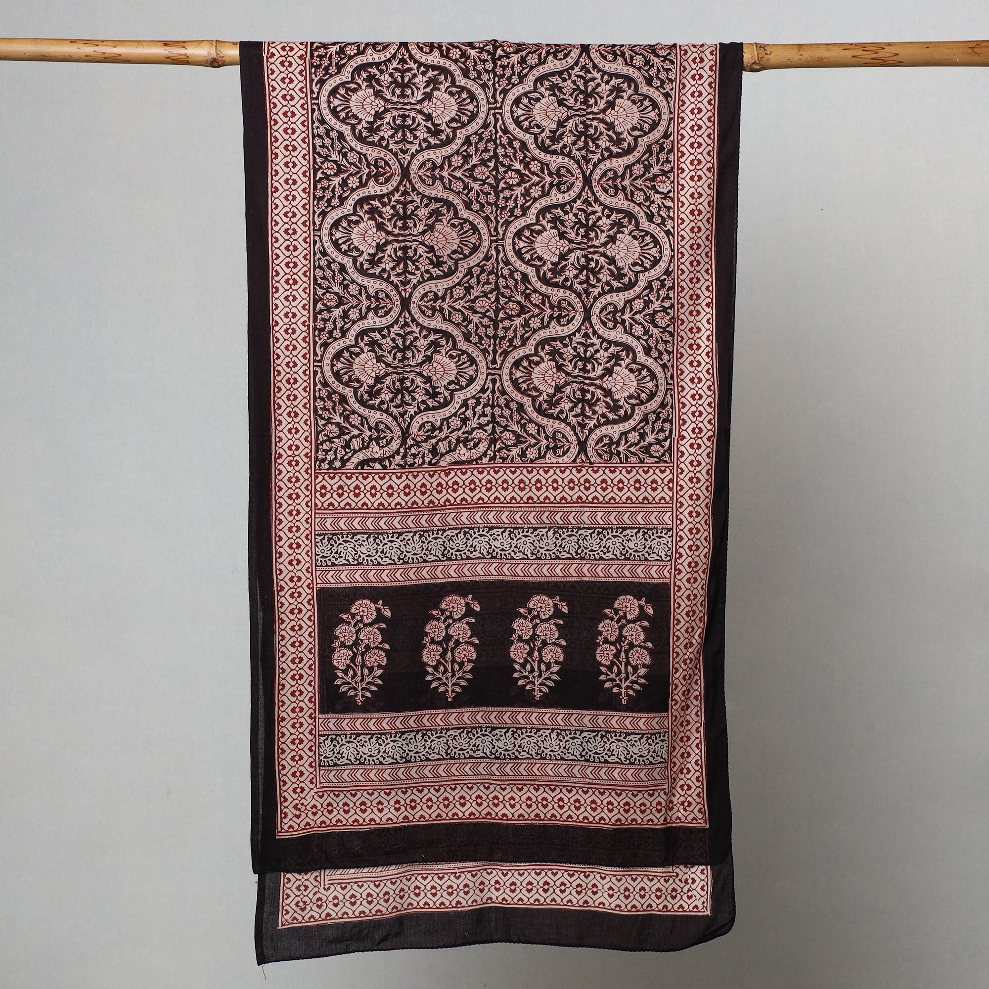 Elevate your style with the special black bagh block printed cotton stole crafted by the skilled artisan Bilal Khatri. This stole is a masterpiece created using natural dyes and the traditional handblock printing technique practiced in Bagh, Madhya Pradesh. Made with exquisite attention to detail, the stole showcases the beauty of natural dyed cotton and adds a touch of elegance to your everyday attire, leaving a lasting impression wherever you go.