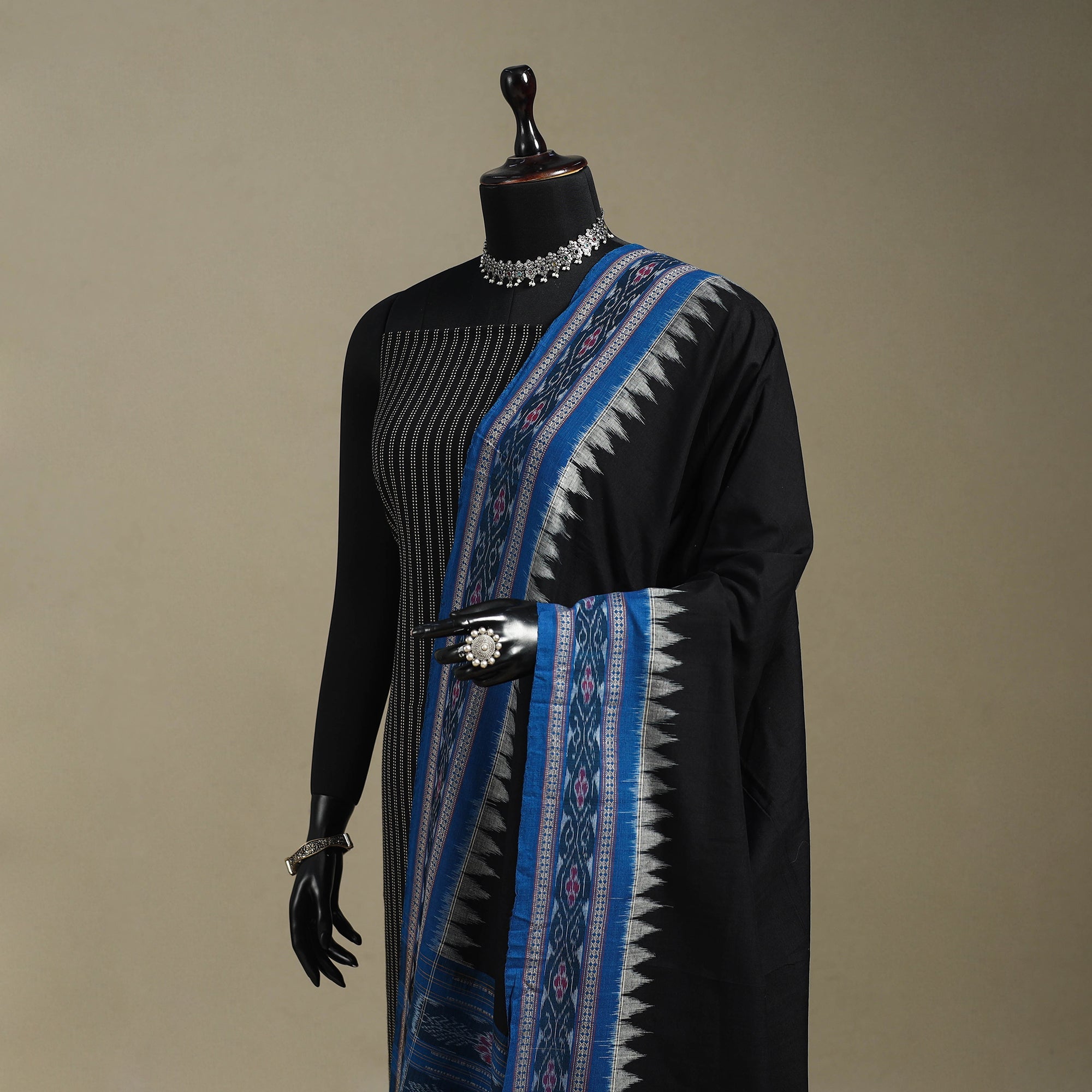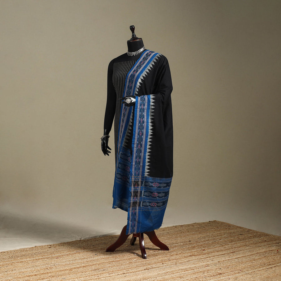 Black - Sambalpuri Ikat Handloom Cotton 3pc Unstitched Dress Material 16