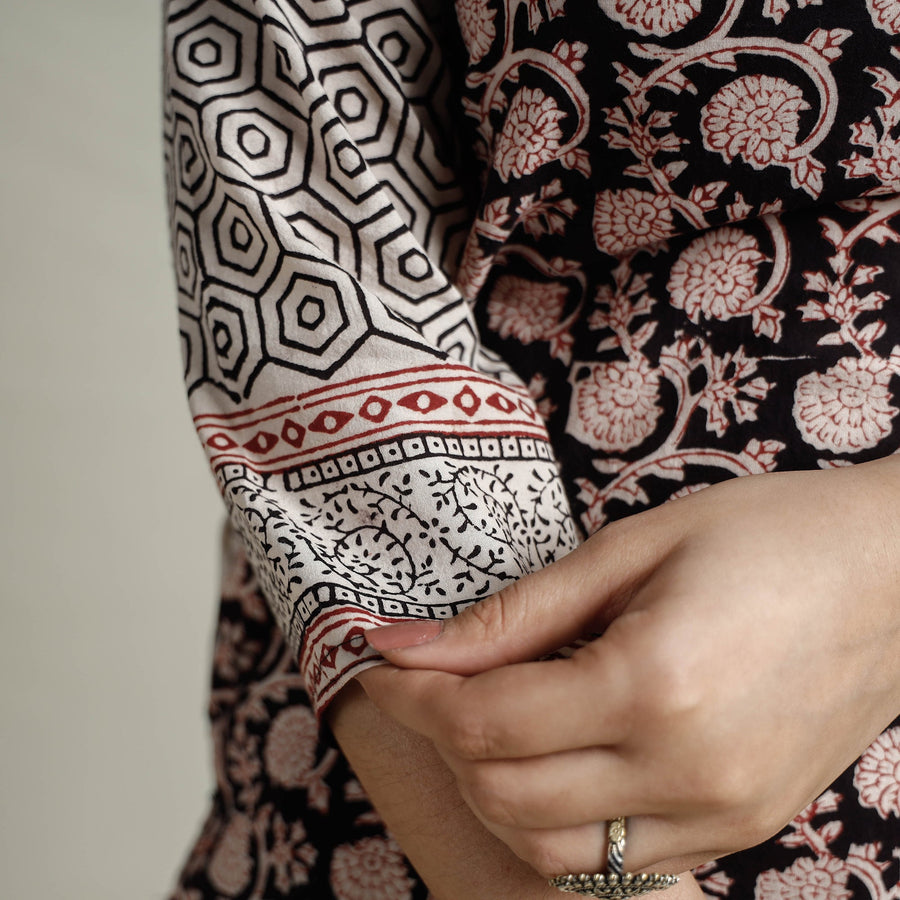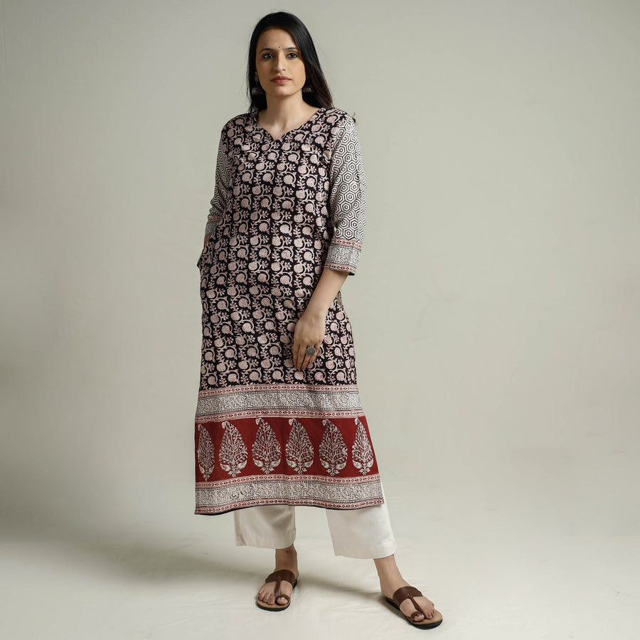 Look and feel beautiful in this uniquely designed black block print cotton straight bagh kurta with one side pocket. This cotton Kurta makes you comfortable with ease all day long. This Kurta is perfect for your daily outing and for a special occasion. Bagh is a hand block printing technique from the Bagh, a small tribal town in Dhar district of Madhya Pradesh. ‘Bagh prints’ are trendy, cool and comfortable cloth material.