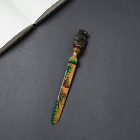 Exquisite rajasthani handpainted paper cutter, meticulously crafted using natural kadam wood and adorned with vibrant acrylic colors. Each piece is lovingly handpainted by master artisans, showcasing the intricate rajasthani designs and cultural motifs. The sturdy kadam wood construction ensures durability, while the sharp blade allows for precise paper cutting. Elevate your desk accessories with this unique and culturally rich paper cutter, a perfect combination of functionality and artistic beauty.