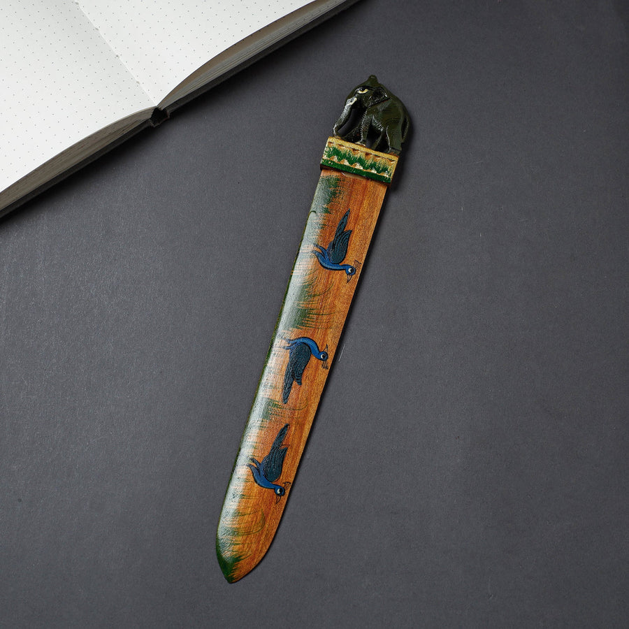Exquisite rajasthani handpainted paper cutter, meticulously crafted using natural kadam wood and adorned with vibrant acrylic colors. Each piece is lovingly handpainted by master artisans, showcasing the intricate rajasthani designs and cultural motifs. The sturdy kadam wood construction ensures durability, while the sharp blade allows for precise paper cutting. Elevate your desk accessories with this unique and culturally rich paper cutter, a perfect combination of functionality and artistic beauty.