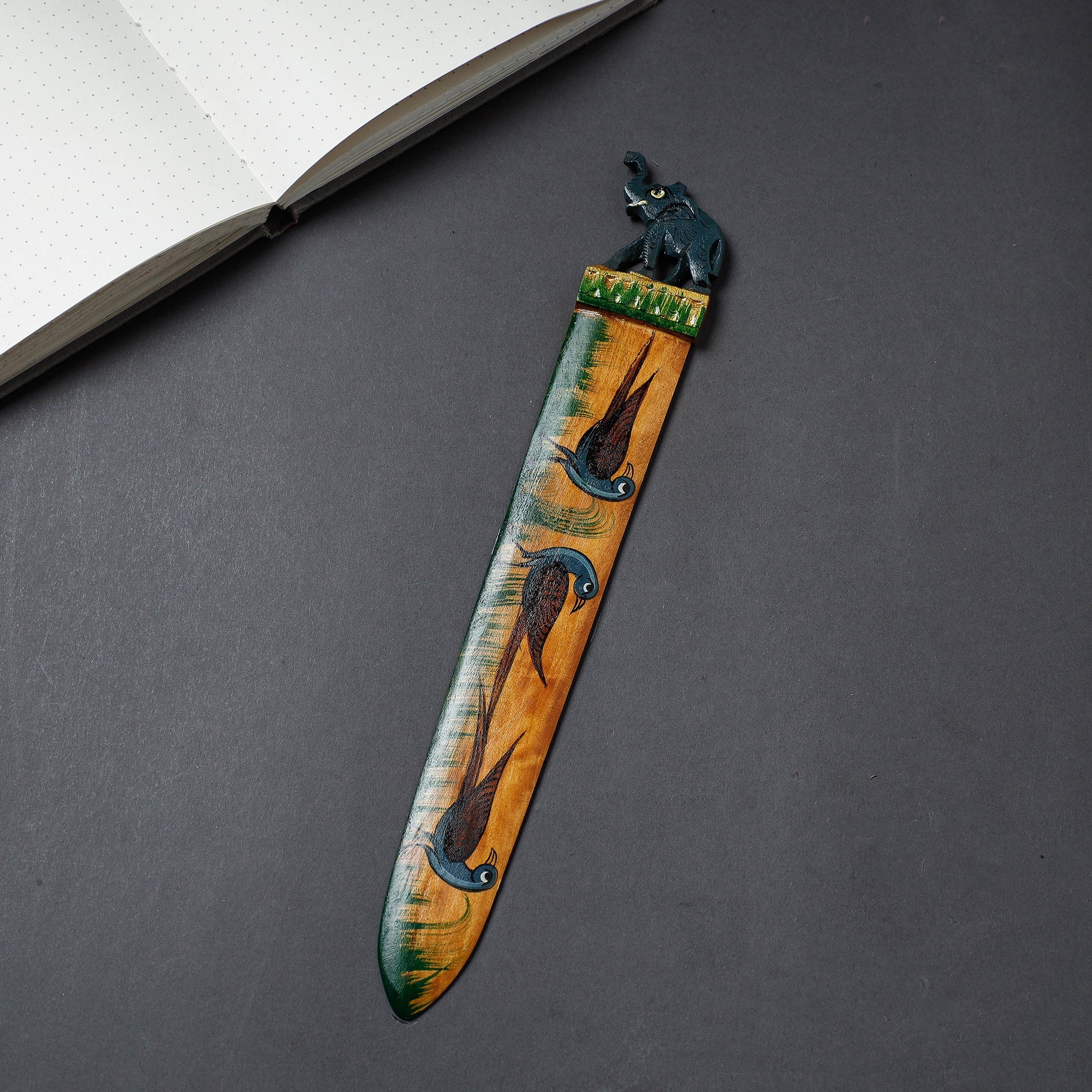 Exquisite rajasthani handpainted paper cutter, meticulously crafted using natural kadam wood and adorned with vibrant acrylic colors. Each piece is lovingly handpainted by master artisans, showcasing the intricate rajasthani designs and cultural motifs. The sturdy kadam wood construction ensures durability, while the sharp blade allows for precise paper cutting. Elevate your desk accessories with this unique and culturally rich paper cutter, a perfect combination of functionality and artistic beauty.