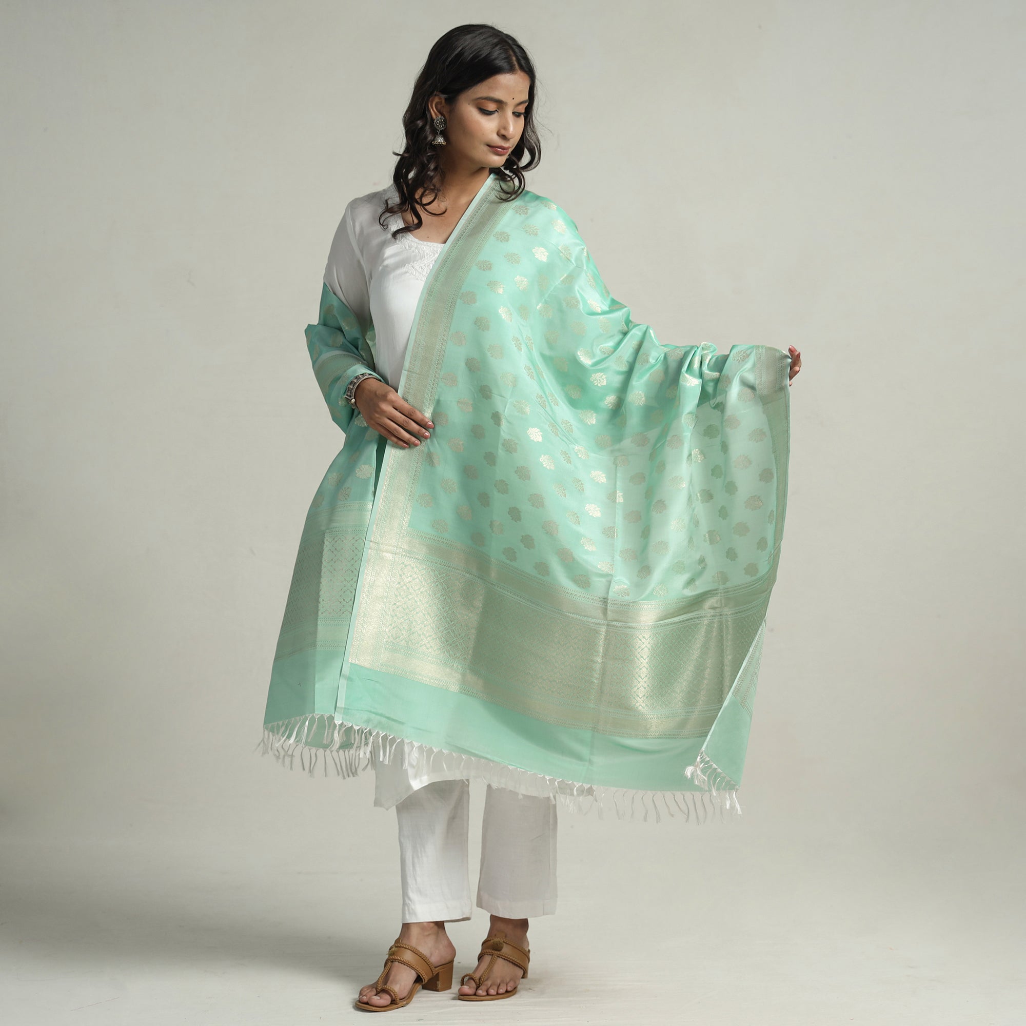 • Green - banarasi handloom katan silk zari buti dupatta