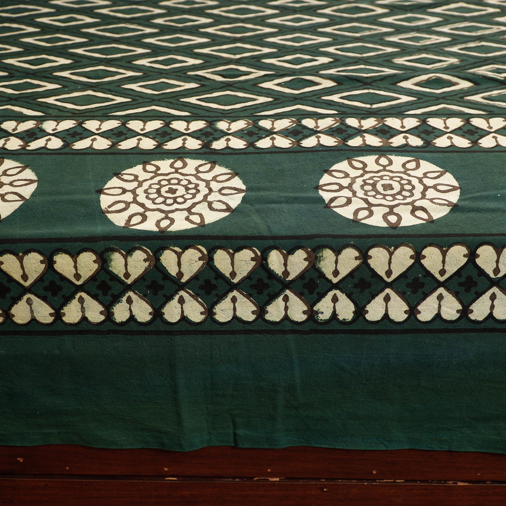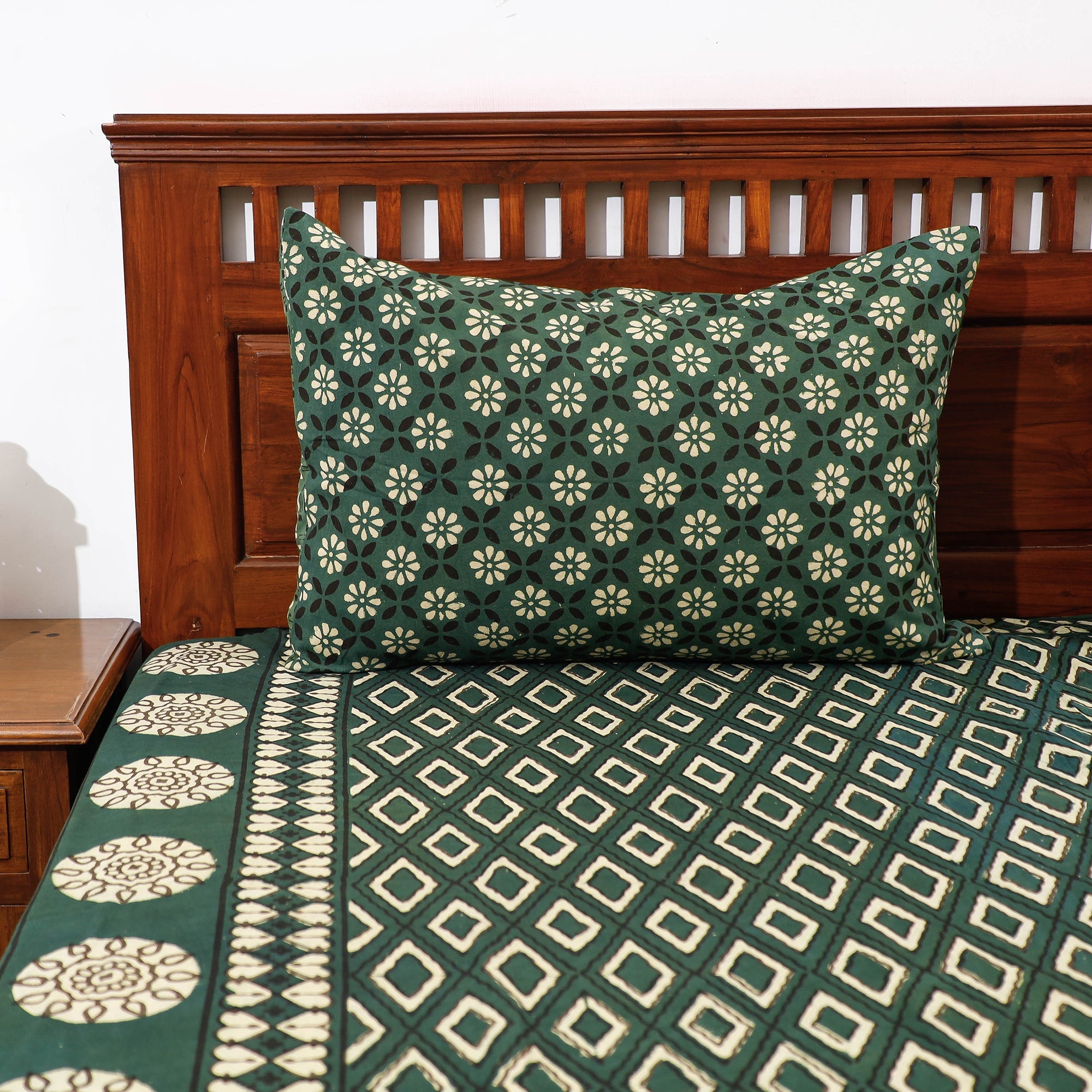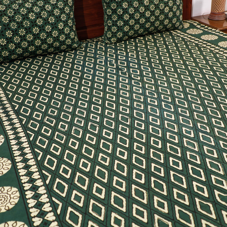 This exquisite pipad block-printed cotton double bed cover with pillow covers is a masterpiece crafted by skilled artisans in Pipar, Rajasthan. Made with natural dyes and using the traditional hand block printing technique, it's a perfect blend of beauty and sustainability.