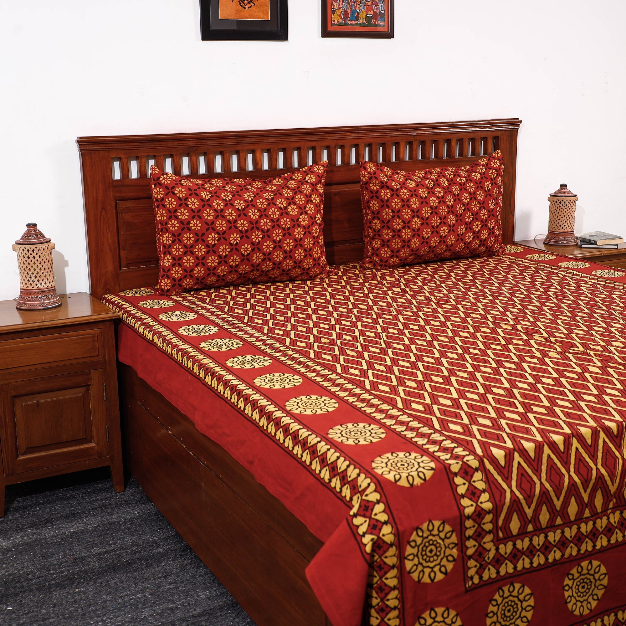 This exquisite pipad block-printed cotton double bed cover with pillow covers is a masterpiece crafted by skilled artisans in Pipar, Rajasthan. Made with natural dyes and using the traditional hand block printing technique, it's a perfect blend of beauty and sustainability.