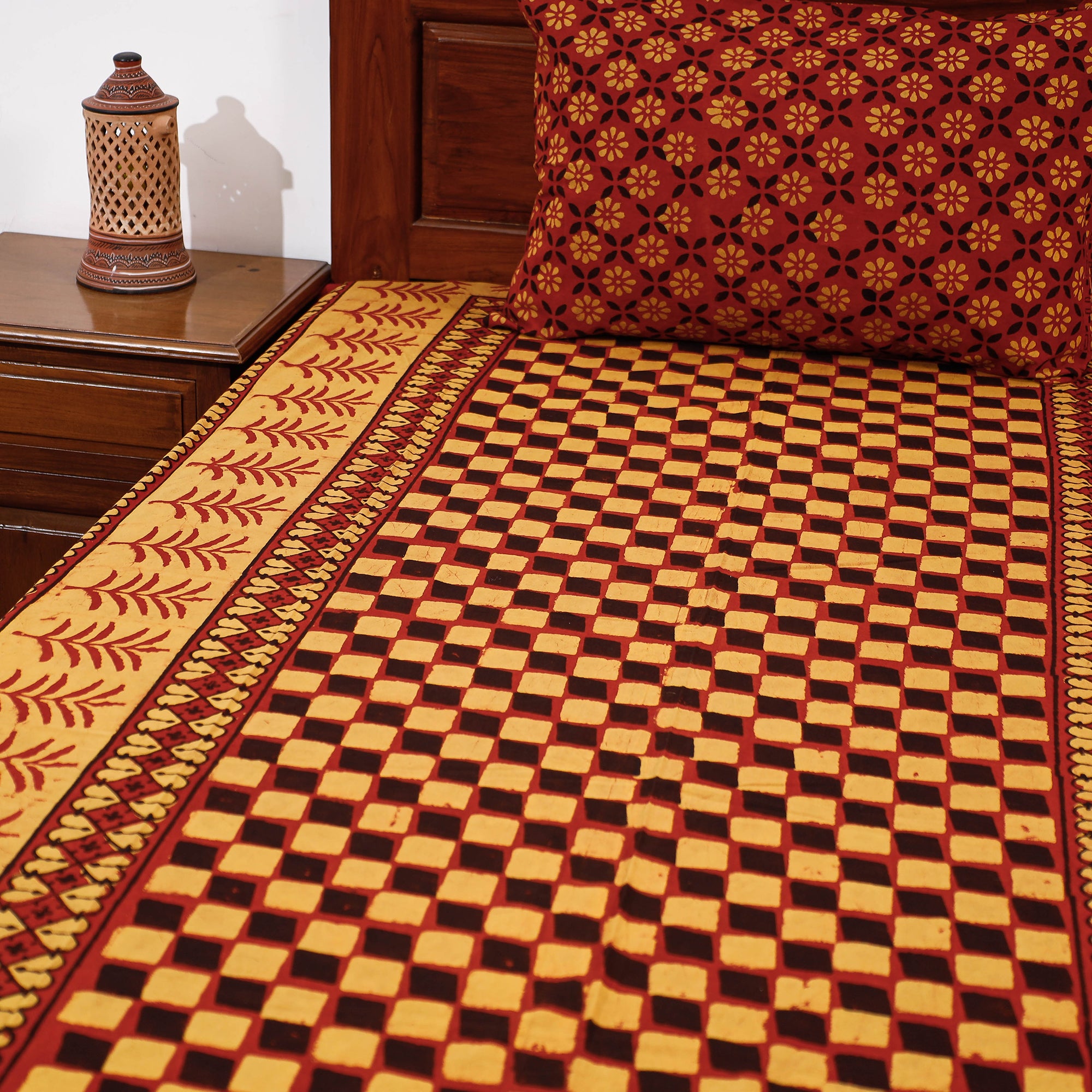 This exquisite pipad block-printed cotton single bed cover with pillow covers is a masterpiece crafted by skilled artisans in Pipar, Rajasthan. Made with natural dyes and using the traditional hand block printing technique, it's a perfect blend of beauty and sustainability.
