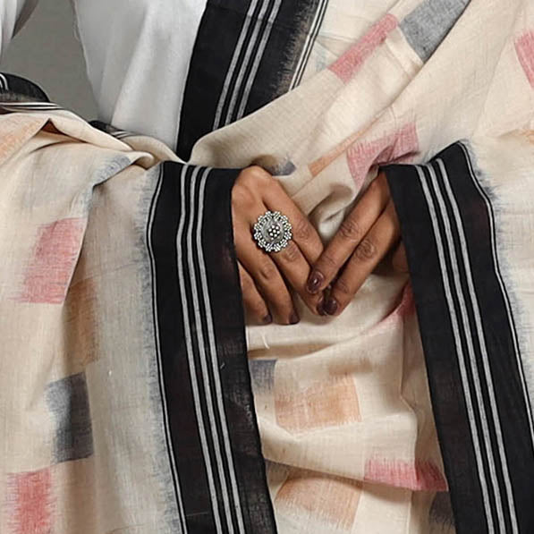 Maniabandha Ikat is a traditional handwoven textile from Maniabandha village in Odisha,known for its intricate tie-dye patterns and vibrant colors. This centuries-old craft involves a process where both warp and weft threads are tie-dyed before weaving, resulting in unique designs.