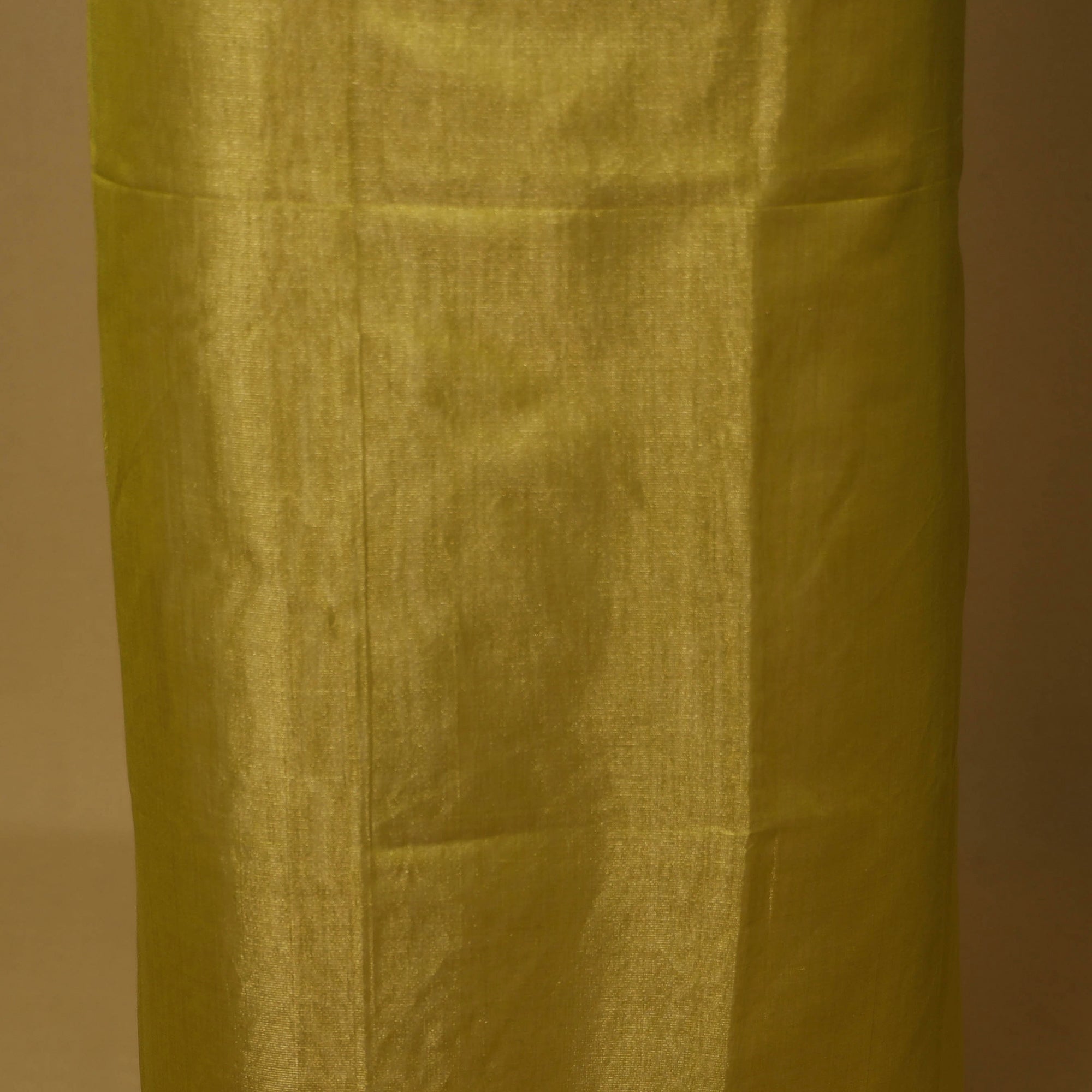 Fine quality green maheshwari silk-cotton tissue zari handloom kurta material and dupatta with zari border crafted by the master-weaver Gulrez Ansari from Maheshwar. Every thread is carefully woven on a handloom, showcasing the craftsmanship and attention to detail that goes into making each piece. The sheer texture of this suit material enhances its grace and elegance, making it a truly exquisite ensemble.