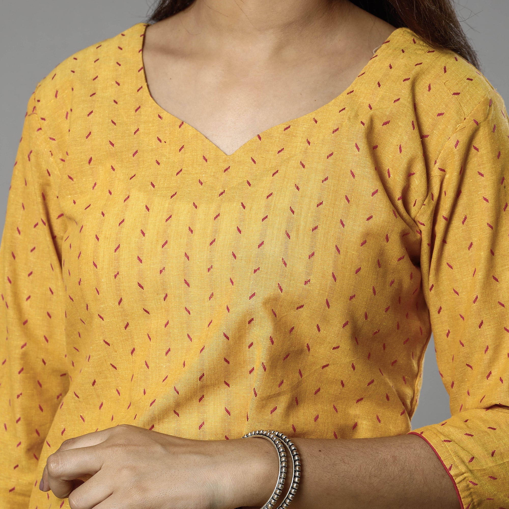 Yellow - Short Cotton Jacquard Kurta for women 24