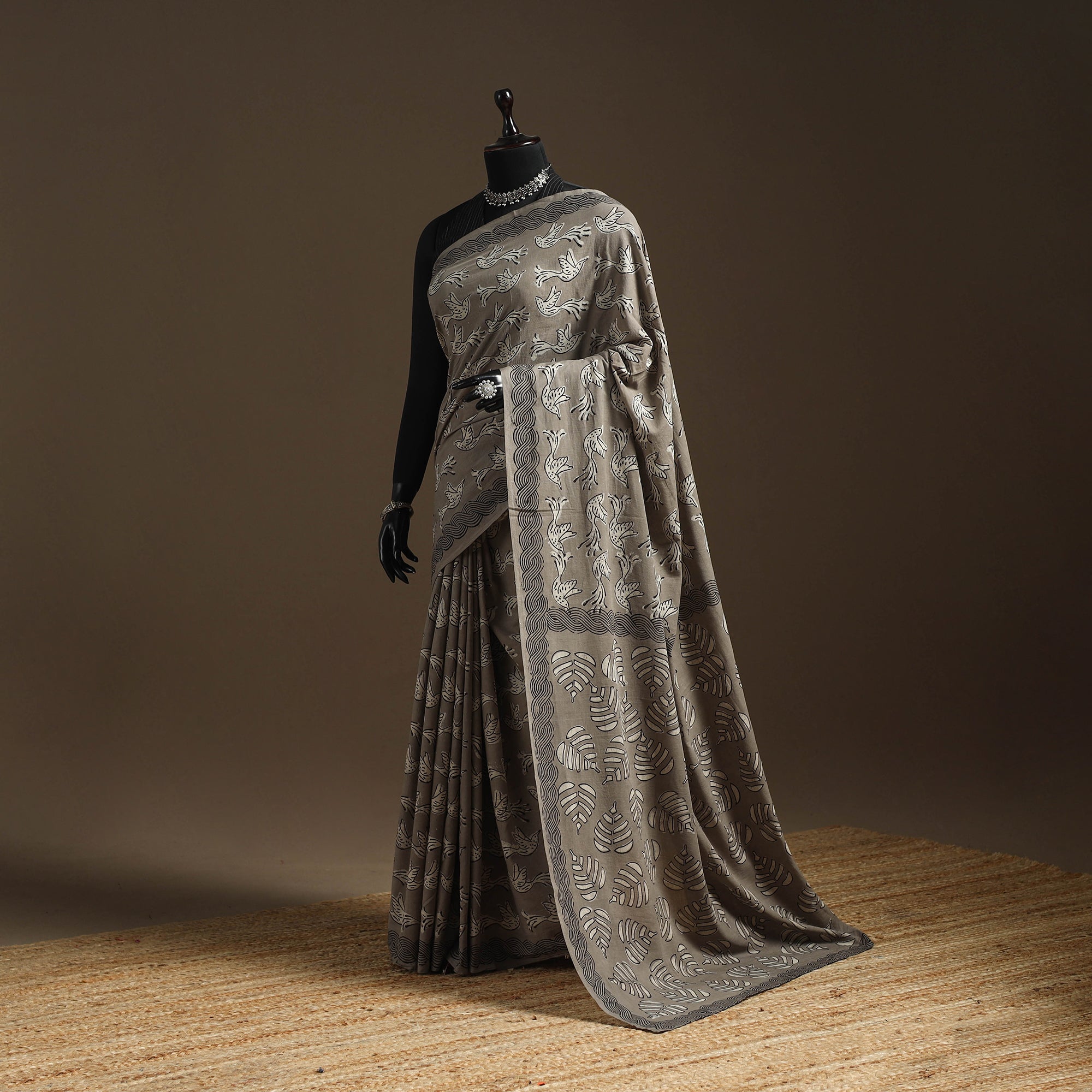 Elevate your style with our fine quality brown cotton natural dyed special art block printed saree. Skillfully crafted by fourth generation textile printers in Rajasthan, this hand block printed saree combines contemporary designs with traditional processes. Embrace the beauty of slow fashion and the rich heritage of traditional skills with this exquisite cotton saree.