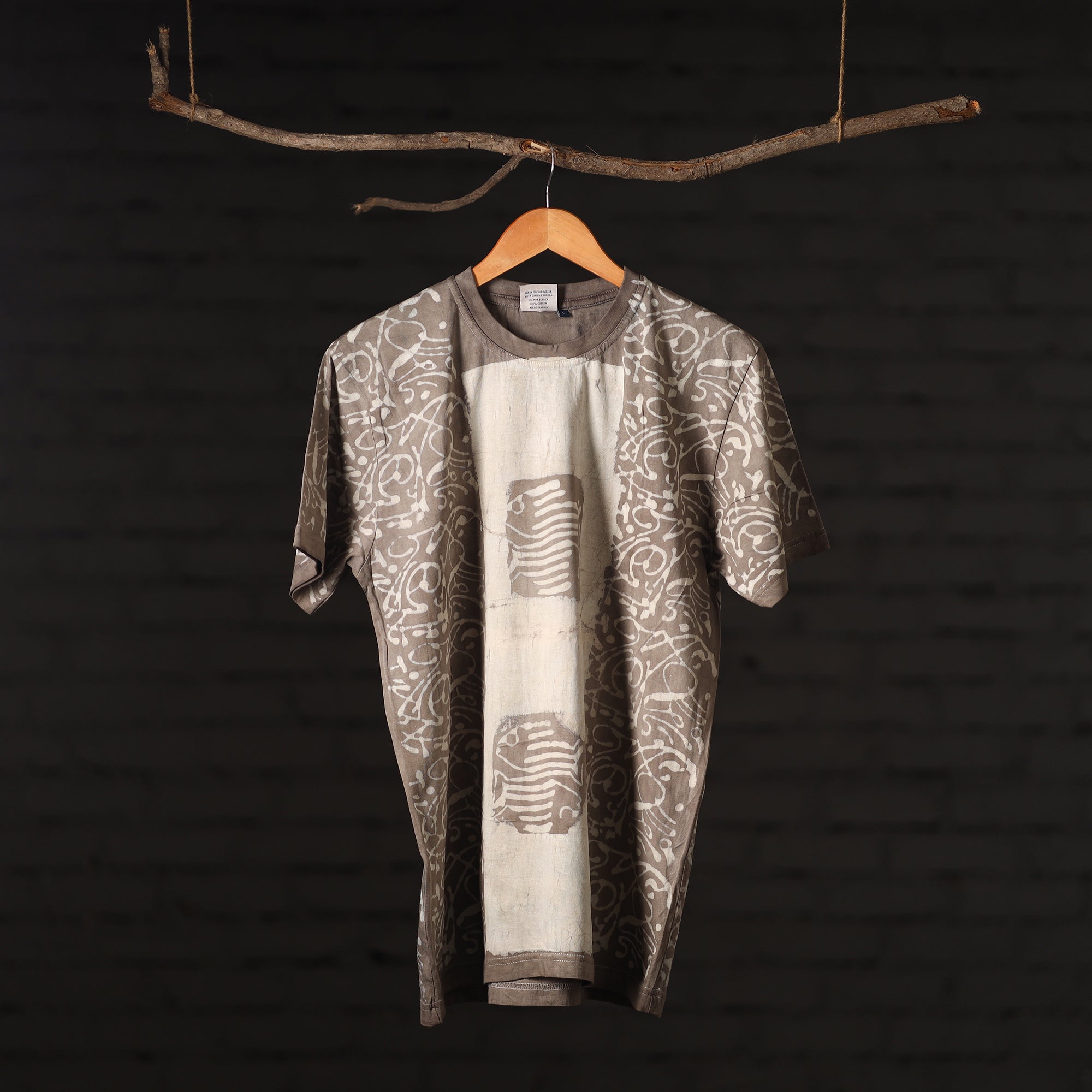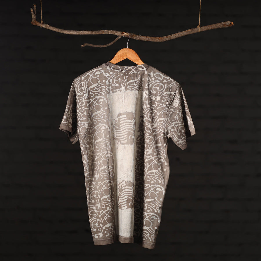 Elevate your style with this exquisite, fine quality bindaas hand block printed cotton unisex round neck T-shirt! Made by skilled fourth-generation textile printers in Rajasthan, this t-shirt features contemporary designs created through traditional processes. The natural dyes and hand block printing give it a unique, artisanal look. With a modern aesthetic and design, this slow fashion t-shirt is perfect for those who appreciate traditional skills. It's comfortable, breathable, and versatile, making it a great addition to any wardrobe. To make these t-shirts it takes: a hundred year old technique, 15-22 processes, 25-40 pairs of hands, 65 hours spread over, at least 12 days, a lot of sun and sand!