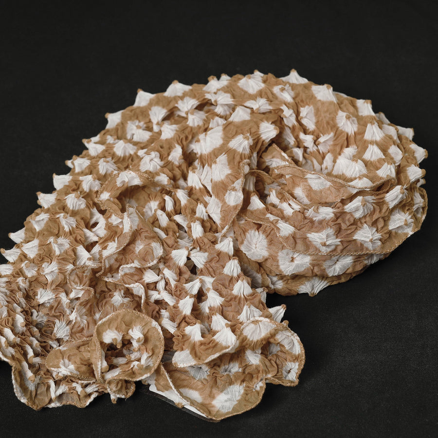 Celebrate the vibrant artistry of brown kutch tie-dye cotton bandhani stole. Created using the traditional tie-dye technique practiced by skilled artisans in Kutch, resulting in intricate patterns and vibrant colors. this stole is perfect for any occasion, Each piece is meticulously dyed by tying the fabric tightly with thread at multiple points, resulting in a beautifully intricate design.