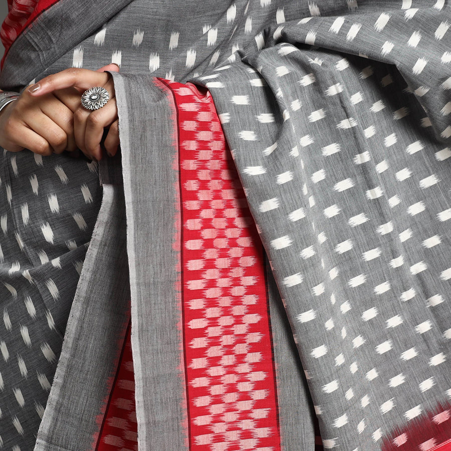 Indulge in the timeless beauty of this pochampally ikat handloom cotton saree from Telangana. Adorned with intricate patterns created using the traditional resist dyeing technique, Ikat, this saree showcases the mastery of craftsmanship. Known for its vibrant colors, exquisite textures, and captivating designs, Indian Ikat has long been cherished by fashion designers worldwide. With its rich heritage and exceptional artistry, this saree is a testament to the beauty and elegance of traditional handloom textiles.