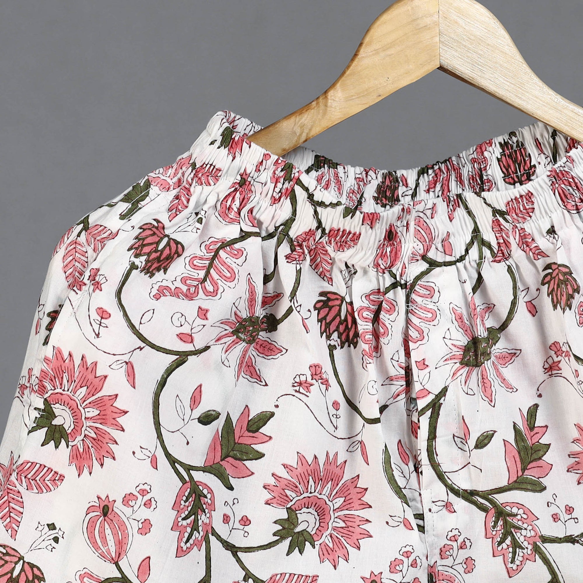 Introducing our cotton short/boxer with exquisite sanganeri hand block prints. This boxer features a durable waistband, a button placket with the front fly open, side pockets, and label-free comfort. Style yourself attractively with these alluring motif boxers, perfect for your daily wear.