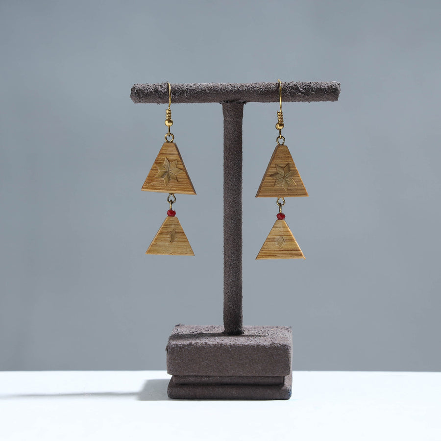 •  Handcrafted Double Triangle Shaped Bamboo Earrings