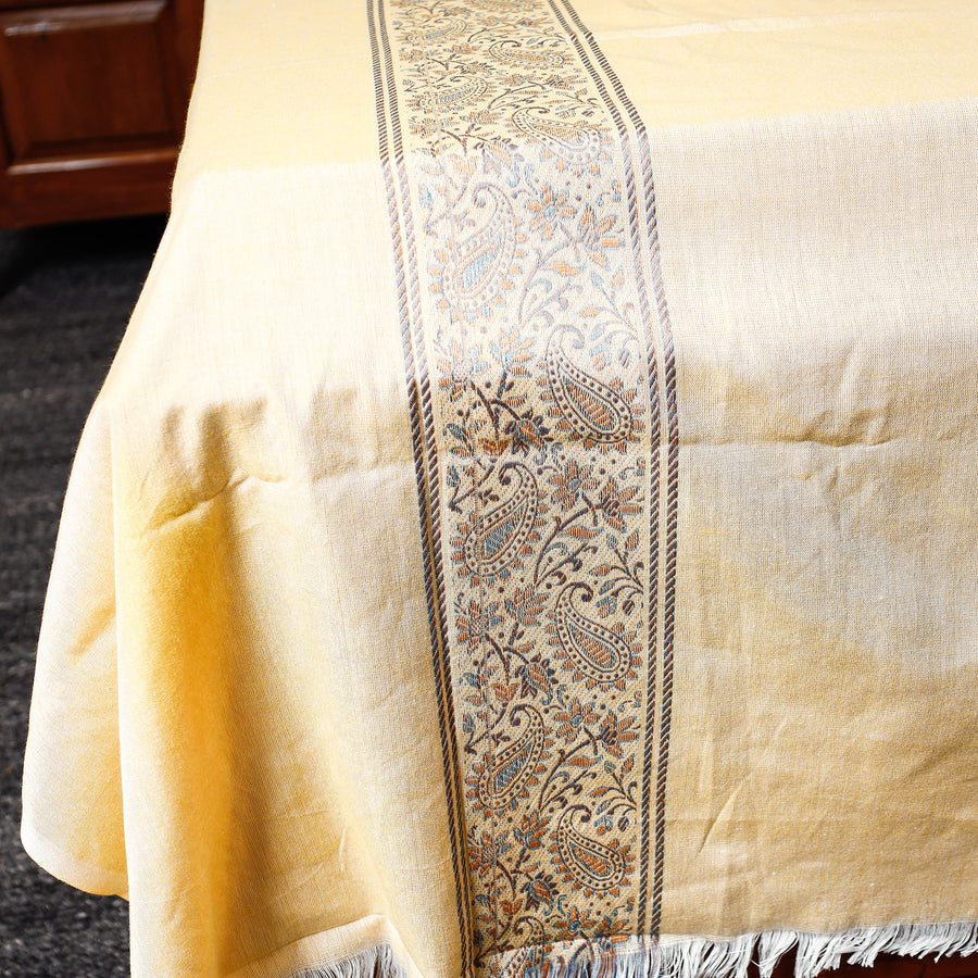 Yellow - Himroo Handloom Jacquard Mercerized Cotton Double Bed Cover (98 x 88 in)
