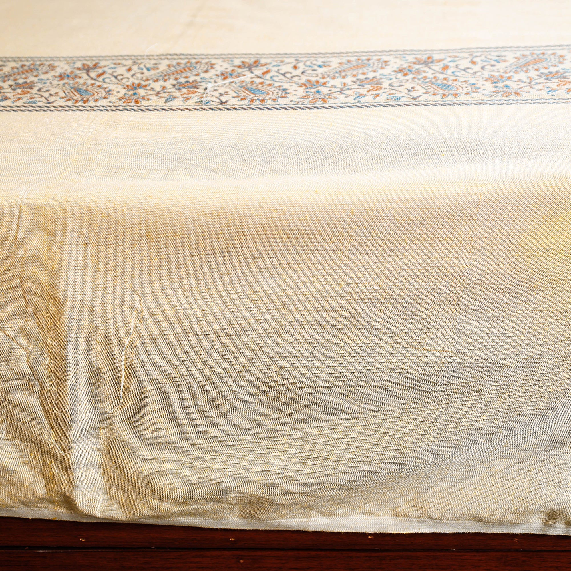 Blue - Himroo Handloom Mercerized Cotton Double Bed Cover (94 x 87 in)