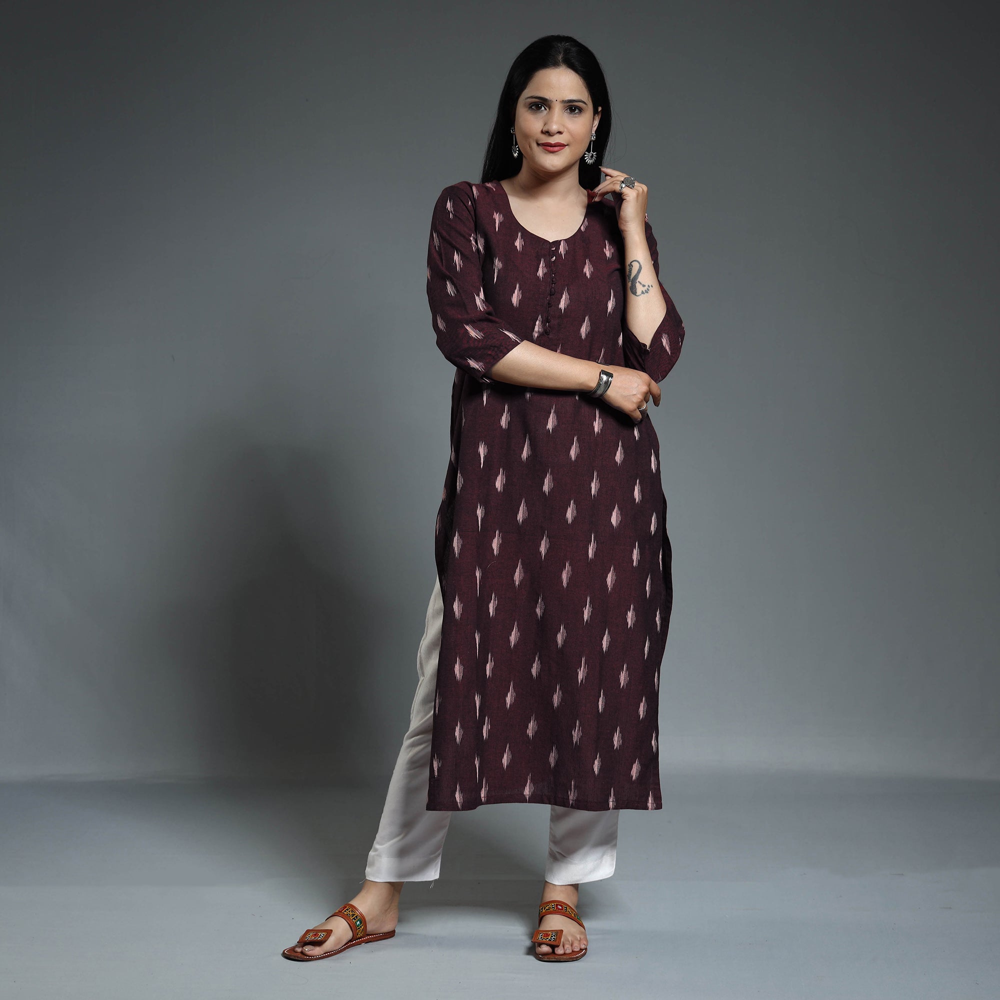 {"id":7572902805699,"title":"Maroon - Pochampally Ikat Weave Cotton Long Straight Kurta","handle":"2023-267-1-141-pochampally-ikat-weave-cotton-long-kurta","description":"\u003ctable width=\"100%\" class=\"gmail-mce-item-table\" data-mce-selected=\"1\"\u003e\n\u003ctbody\u003e\n\u003ctr\u003e\n\u003ctd data-mce-selected=\"1\"\u003e\u003cspan style=\"color: #f1c232;\" data-mce-style=\"color: #f1c232;\"\u003eWeight\u003c\/span\u003e\u003c\/td\u003e\n\u003ctd data-mce-selected=\"1\"\u003e190 grams (approximately).\u003c\/td\u003e\n\u003c\/tr\u003e\n\u003ctr\u003e\n\u003ctd data-mce-selected=\"1\"\u003e\u003cspan style=\"color: #f1c232;\" data-mce-style=\"color: #f1c232;\"\u003eMaterial\u003c\/span\u003e\u003c\/td\u003e\n\u003ctd data-mce-selected=\"1\"\u003eExperience the beauty of Indian Ikat with this pochampally ikat weave cotton long kurta. Crafted from high-quality cotton, it offers comfort and breathability all day long. The vibrant ikat patterns in beautiful colours make it a standout piece. With its long length and side pocket, it combines style and functionality. With its comfortable fit and unique detailing, this kurta is perfect for your daily outing and for a special occasion.\u003cbr\u003e\n\u003c\/td\u003e\n\u003c\/tr\u003e\n\u003ctr\u003e\n\u003ctd data-mce-selected=\"1\"\u003e\u003cspan style=\"color: #f1c232;\" data-mce-style=\"color: #f1c232;\"\u003eCare\u003c\/span\u003e\u003c\/td\u003e\n\u003ctd data-mce-selected=\"1\"\u003eGentle hand wash separately in cold water with mild\/liquid detergents. Avoid soaking for too long.\u003c\/td\u003e\n\u003c\/tr\u003e\n\u003ctr\u003e\n\u003ctd data-mce-selected=\"1\"\u003e\u003cspan style=\"color: #f1c232;\" data-mce-style=\"color: #f1c232;\"\u003eColour\u003c\/span\u003e\u003c\/td\u003e\n\u003ctd data-mce-selected=\"1\"\u003eSlight difference in color from the visible product image is possible. \u003ca href=\"\/pages\/photos\" target=\"_blank\" data-mce-href=\"https:\/\/www.itokri.com\/pages\/photos\" title=\"Authentic handcrafted products | itokri’s visual and quality promise\" aria-label=\"Authentic handcrafted products | itokri’s visual and quality promise\"\u003eRead more\u003c\/a\u003e.\u003c\/td\u003e\n\u003c\/tr\u003e\n\u003c\/tbody\u003e\n\u003c\/table\u003e","published_at":"2024-07-20T18:18:37+05:30","created_at":"2023-06-01T17:48:32+05:30","vendor":"ITOKRI CASUALS","type":"kurtas","tags":["clearance","craft-most-loved","find my size","itokri casuals","kurtas","made to order","maroon","material-cotton","meta-filter-craft process-pochampally ikat weaving","new arrival kurtis","plus size","primarycraft_pochampally-ikat-weaving","sizeGuide-long-kurti-size-chart"],"price":219000,"price_min":219000,"price_max":219000,"available":true,"price_varies":false,"compare_at_price":null,"compare_at_price_min":0,"compare_at_price_max":0,"compare_at_price_varies":false,"variants":[{"id":42450832752835,"title":"XS","option1":"XS","option2":null,"option3":null,"sku":"COJP_JP\/KUT\/21\/C\/15\/XS","requires_shipping":true,"taxable":true,"featured_image":null,"available":true,"name":"Maroon - Pochampally Ikat Weave Cotton Long Straight Kurta - XS","public_title":"XS","options":["XS"],"price":219000,"weight":500,"compare_at_price":null,"inventory_quantity":1,"inventory_management":"shopify","inventory_policy":"deny","barcode":null,"requires_selling_plan":false,"selling_plan_allocations":[],"quantity_rule":{"min":1,"max":null,"increment":1}},{"id":42450832785603,"title":"S","option1":"S","option2":null,"option3":null,"sku":"COJP_JP\/KUT\/21\/C\/15\/S","requires_shipping":true,"taxable":true,"featured_image":null,"available":false,"name":"Maroon - Pochampally Ikat Weave Cotton Long Straight Kurta - S","public_title":"S","options":["S"],"price":219000,"weight":500,"compare_at_price":null,"inventory_quantity":0,"inventory_management":"shopify","inventory_policy":"deny","barcode":null,"requires_selling_plan":false,"selling_plan_allocations":[],"quantity_rule":{"min":1,"max":null,"increment":1}},{"id":42450832818371,"title":"M","option1":"M","option2":null,"option3":null,"sku":"COJP_JP\/KUT\/21\/C\/15\/M","requires_shipping":true,"taxable":true,"featured_image":null,"available":false,"name":"Maroon - Pochampally Ikat Weave Cotton Long Straight Kurta - M","public_title":"M","options":["M"],"price":219000,"weight":500,"compare_at_price":null,"inventory_quantity":0,"inventory_management":"shopify","inventory_policy":"deny","barcode":null,"requires_selling_plan":false,"selling_plan_allocations":[],"quantity_rule":{"min":1,"max":null,"increment":1}},{"id":42450832851139,"title":"L","option1":"L","option2":null,"option3":null,"sku":"COJP_JP\/KUT\/21\/C\/15\/L","requires_shipping":true,"taxable":true,"featured_image":null,"available":false,"name":"Maroon - Pochampally Ikat Weave Cotton Long Straight Kurta - L","public_title":"L","options":["L"],"price":219000,"weight":500,"compare_at_price":null,"inventory_quantity":0,"inventory_management":"shopify","inventory_policy":"deny","barcode":null,"requires_selling_plan":false,"selling_plan_allocations":[],"quantity_rule":{"min":1,"max":null,"increment":1}},{"id":42450832883907,"title":"XL","option1":"XL","option2":null,"option3":null,"sku":"COJP_JP\/KUT\/21\/C\/15\/XL","requires_shipping":true,"taxable":true,"featured_image":null,"available":false,"name":"Maroon - Pochampally Ikat Weave Cotton Long Straight Kurta - XL","public_title":"XL","options":["XL"],"price":219000,"weight":500,"compare_at_price":null,"inventory_quantity":0,"inventory_management":"shopify","inventory_policy":"deny","barcode":null,"requires_selling_plan":false,"selling_plan_allocations":[],"quantity_rule":{"min":1,"max":null,"increment":1}},{"id":42450832916675,"title":"2XL","option1":"2XL","option2":null,"option3":null,"sku":"COJP_JP\/KUT\/21\/C\/15\/2XL","requires_shipping":true,"taxable":true,"featured_image":null,"available":false,"name":"Maroon - Pochampally Ikat Weave Cotton Long Straight Kurta - 2XL","public_title":"2XL","options":[