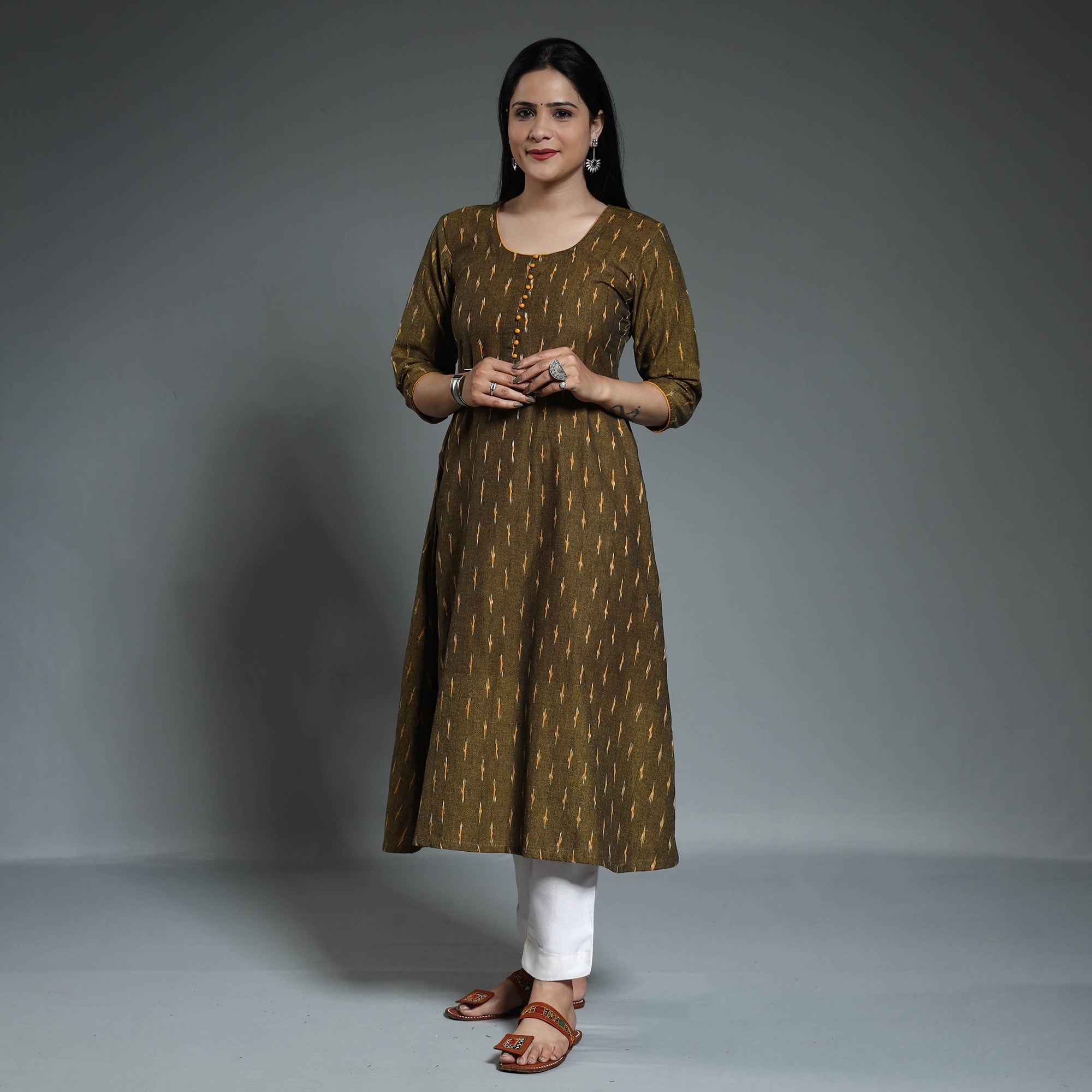 Experience the beauty of Indian Ikat with this pochampally ikat weave cotton long kurta. Crafted from high-quality cotton, it offers comfort and breathability all day long. The vibrant ikat patterns in beautiful colours make it a standout piece. With its long length and side pocket, it combines style and functionality. With its comfortable fit and unique detailing, this kurta is perfect for your daily outing and for a special occasion.