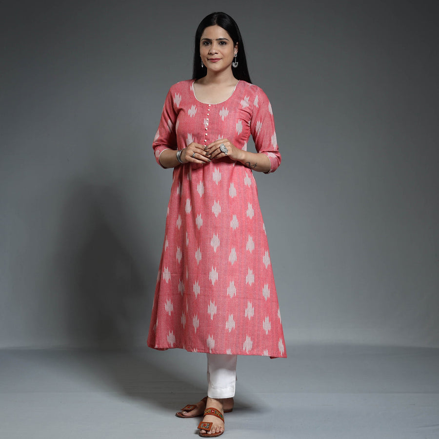 Experience the beauty of Indian Ikat with this pochampally ikat weave cotton long Kurta. Crafted from high-quality cotton, it offers comfort and breathability all day long. The vibrant ikat patterns in beautiful colours make it a standout piece. With its long length and side pocket, it combines style and functionality. With its comfortable fit and unique detailing, this Kurta is perfect for your daily outing and for a special occasion.