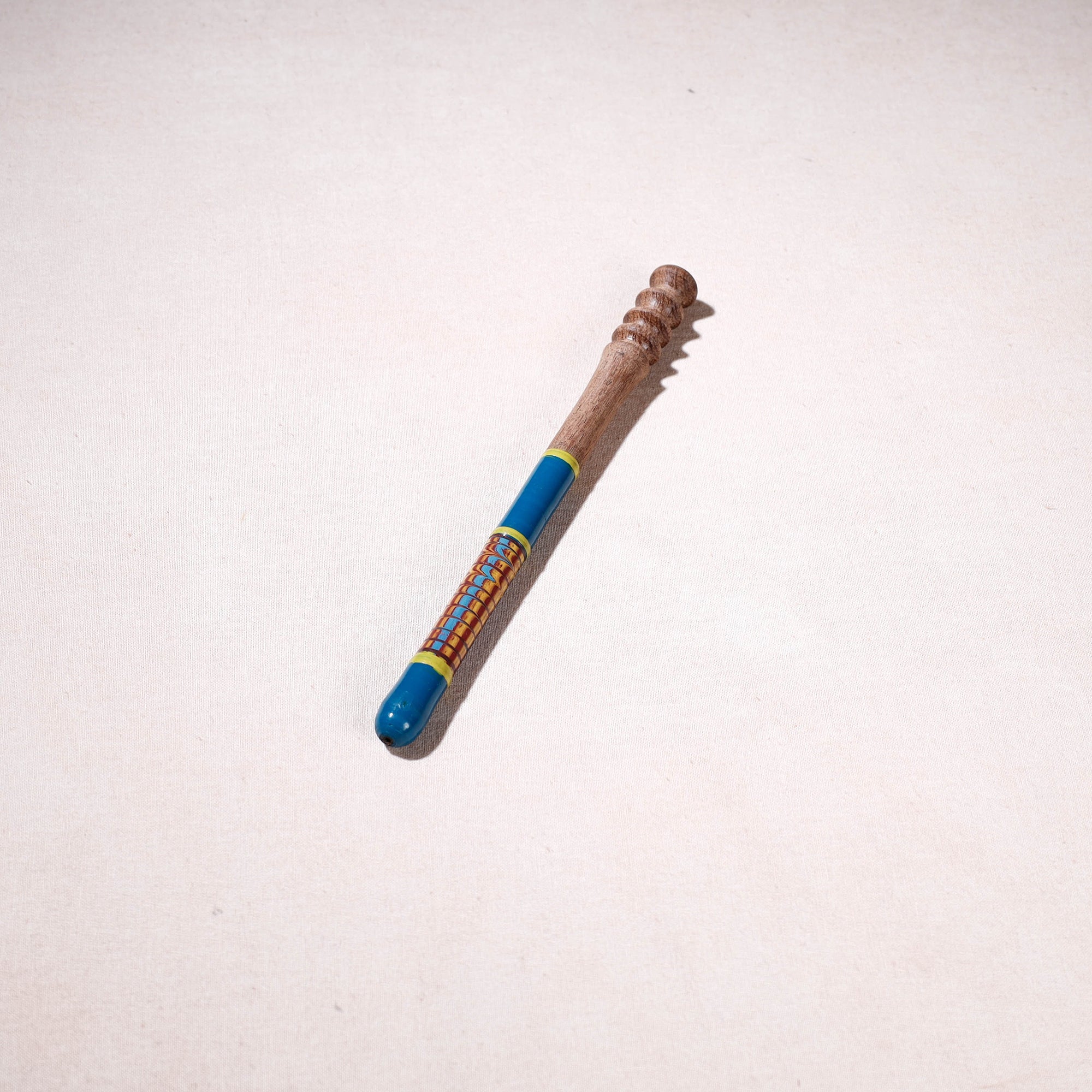 This exquisite handcrafted honey serving spoon is made of babool wood with lacquered colours. This spoon is meticulously handcrafted by skilled artisans from the Vadha community in villages like Nirona and Jura. They begin by selecting babool wood, which is known for its durability and strength. Layers of coloured lacquer are applied to the wood, and intricate designs and effects are chiselled to create a stunning visual appeal.