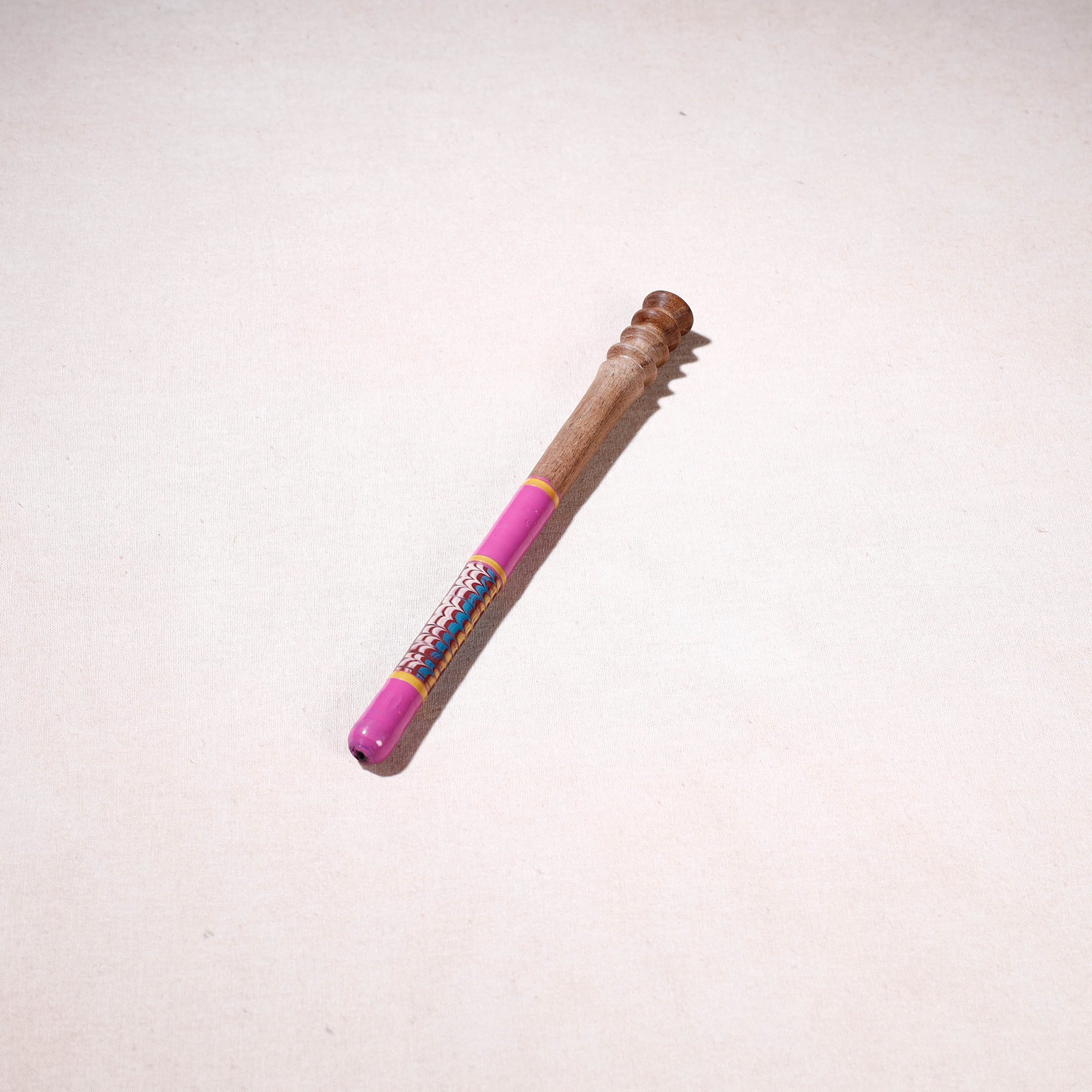 This exquisite handcrafted honey serving spoon is made of babool wood with lacquered colours. This spoon is meticulously handcrafted by skilled artisans from the Vadha community in villages like Nirona and Jura. They begin by selecting babool wood, which is known for its durability and strength. Layers of coloured lacquer are applied to the wood, and intricate designs and effects are chiselled to create a stunning visual appeal.