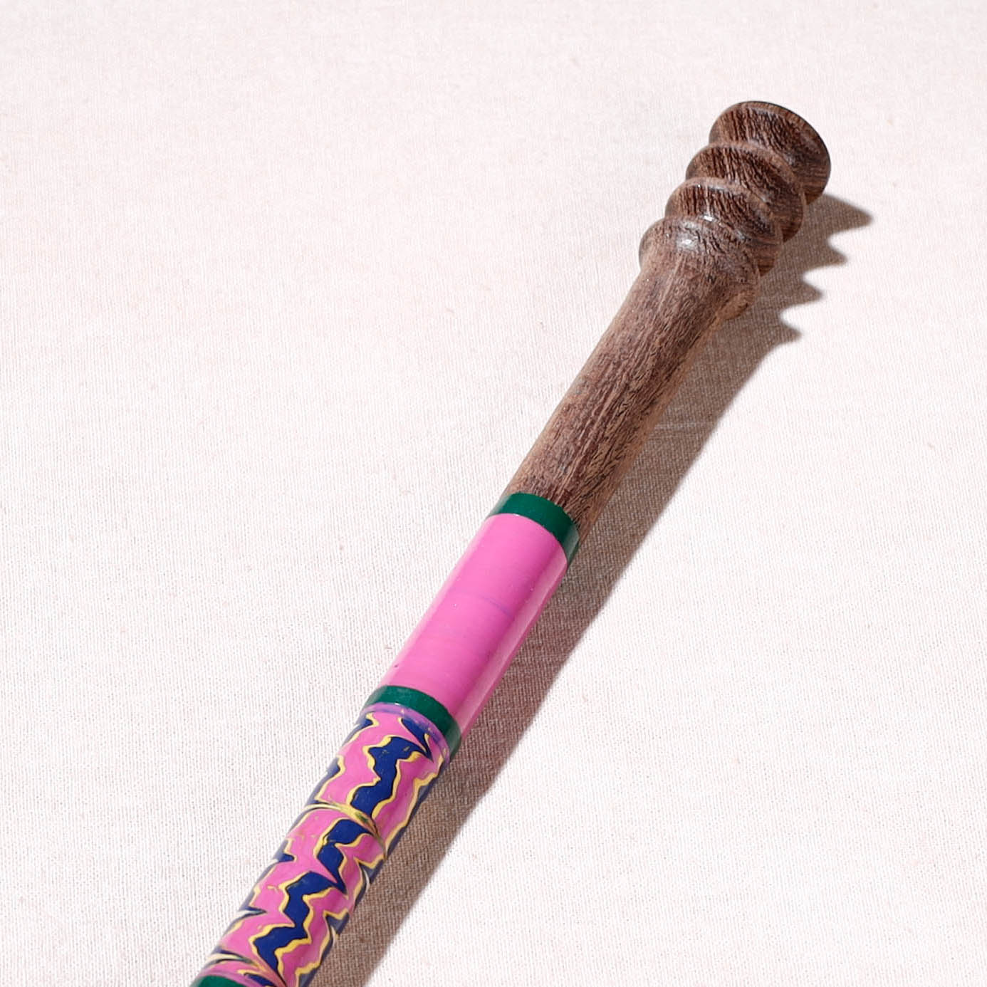 This exquisite handcrafted honey serving spoon is made of babool wood with lacquered colours. This spoon is meticulously handcrafted by skilled artisans from the Vadha community in villages like Nirona and Jura. They begin by selecting babool wood, which is known for its durability and strength. Layers of coloured lacquer are applied to the wood, and intricate designs and effects are chiselled to create a stunning visual appeal.