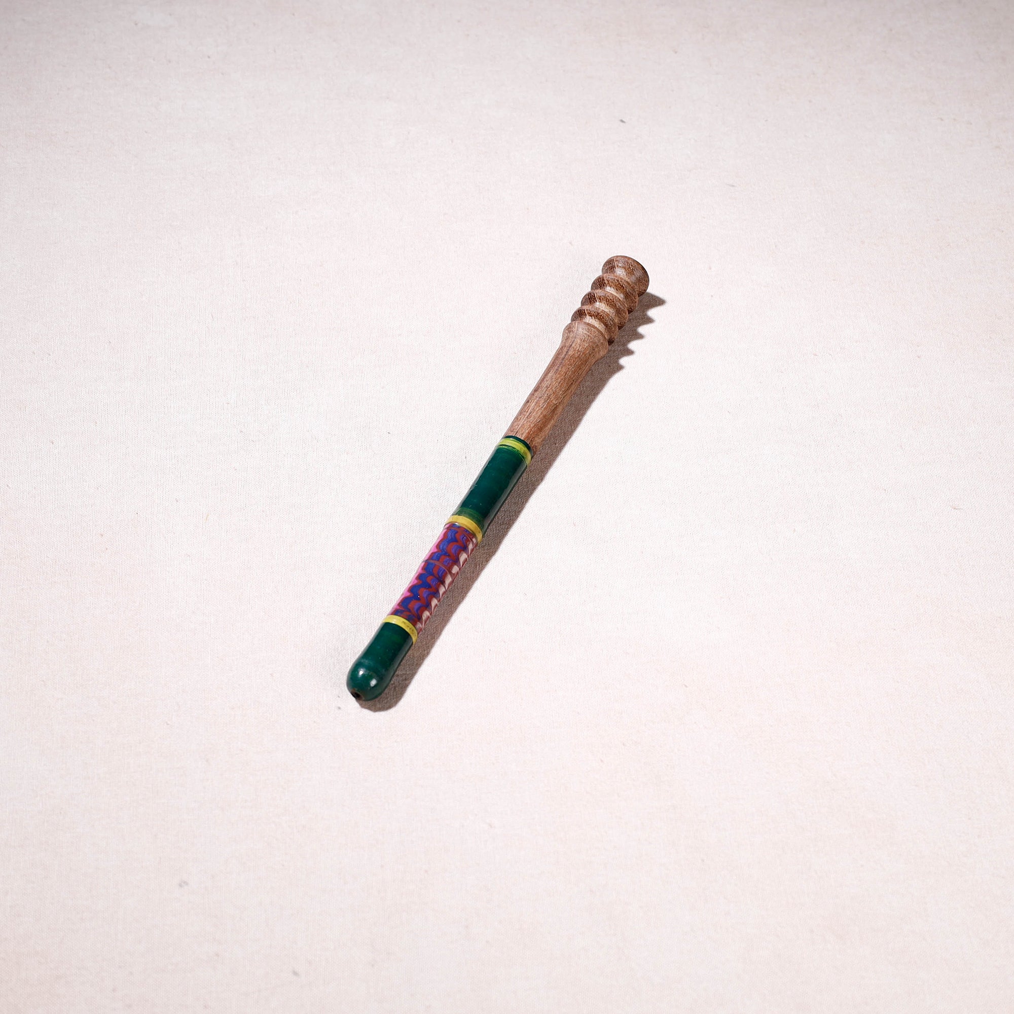 This exquisite handcrafted honey serving spoon is made of babool wood with lacquered colours. This spoon is meticulously handcrafted by skilled artisans from the Vadha community in villages like Nirona and Jura. They begin by selecting babool wood, which is known for its durability and strength. Layers of coloured lacquer are applied to the wood, and intricate designs and effects are chiselled to create a stunning visual appeal.