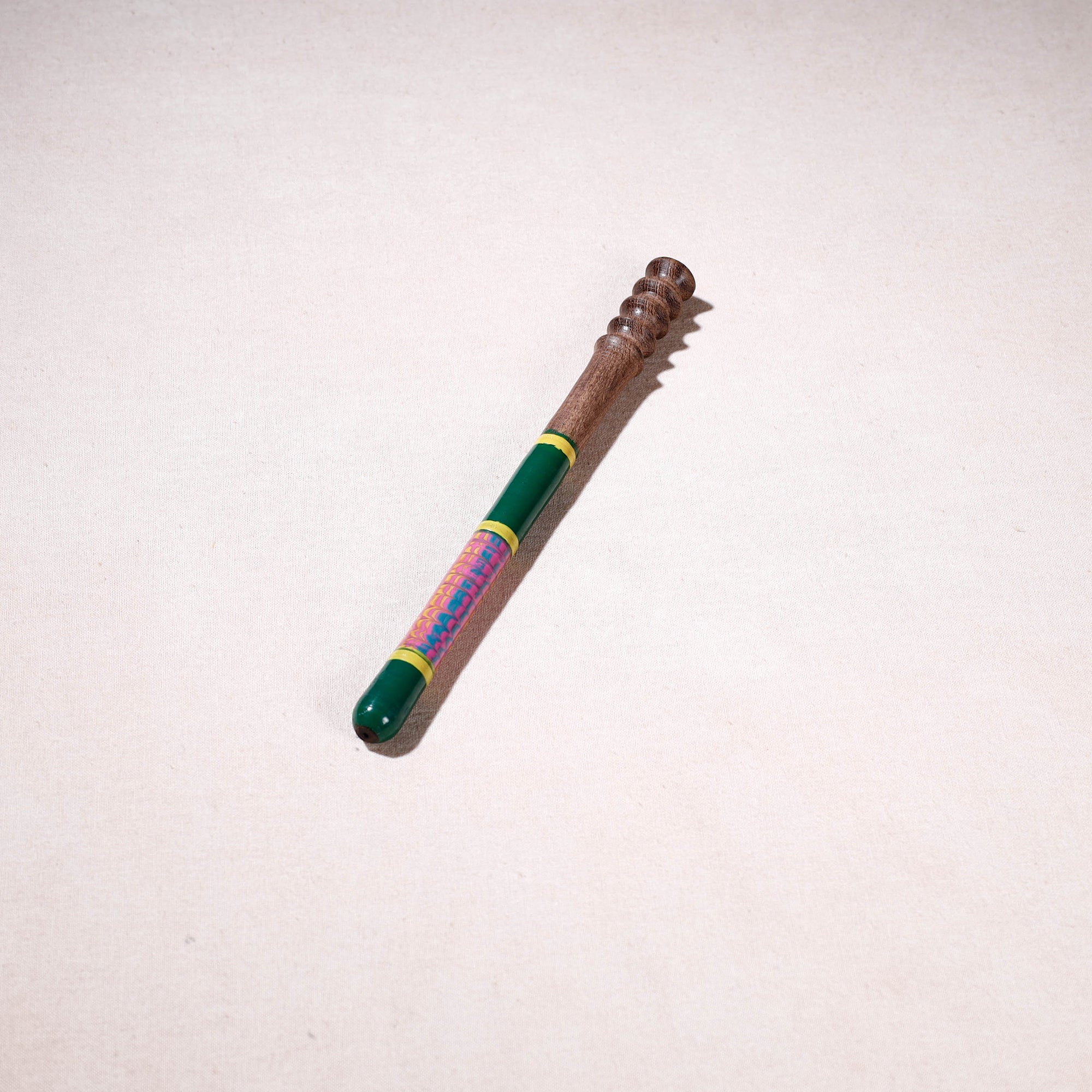 This exquisite handcrafted honey serving spoon is made of babool wood with lacquered colours. This spoon is meticulously handcrafted by skilled artisans from the Vadha community in villages like Nirona and Jura. They begin by selecting babool wood, which is known for its durability and strength. Layers of coloured lacquer are applied to the wood, and intricate designs and effects are chiselled to create a stunning visual appeal.
