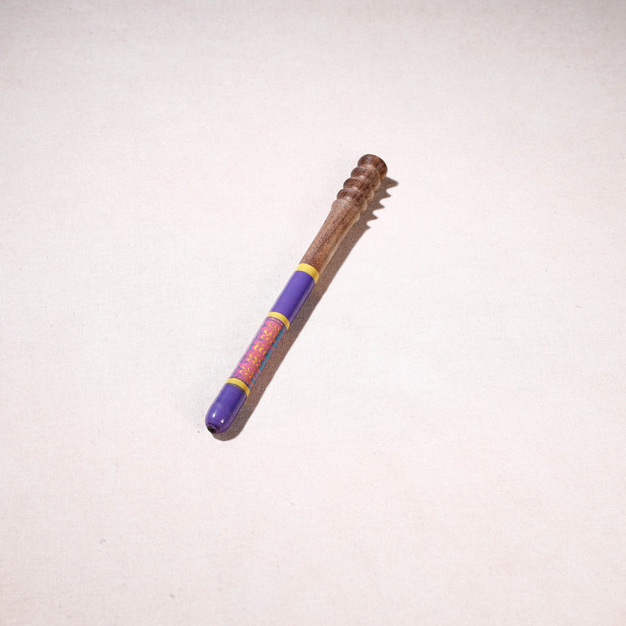 This exquisite handcrafted honey serving spoon is made of babool wood with lacquered colours. This spoon is meticulously handcrafted by skilled artisans from the Vadha community in villages like Nirona and Jura. They begin by selecting babool wood, which is known for its durability and strength. Layers of coloured lacquer are applied to the wood, and intricate designs and effects are chiselled to create a stunning visual appeal.
