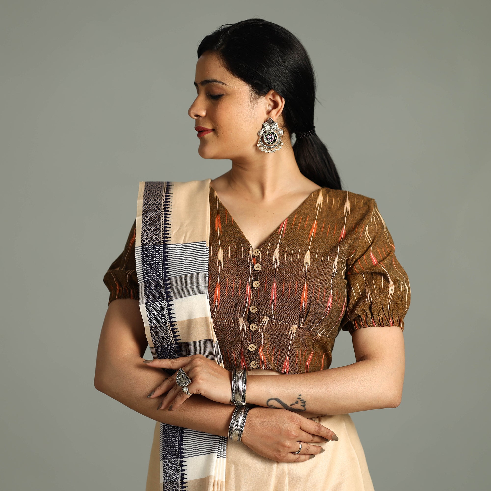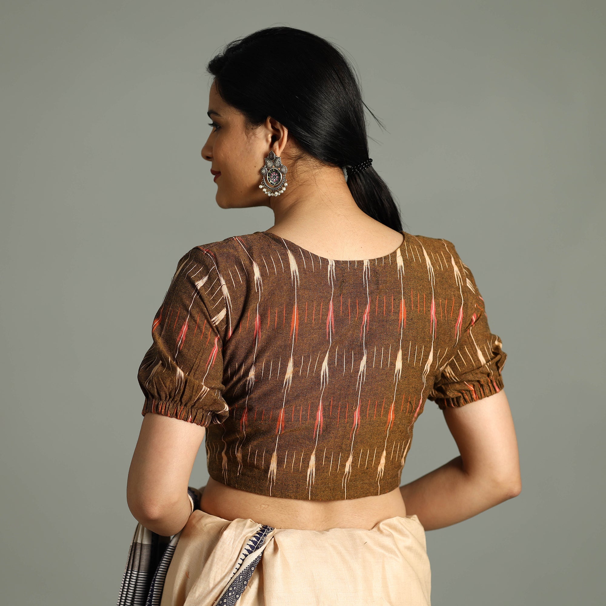 This pochampally ikat cotton stitched blouse is crafted with fine quality cotton fabric, ensuring comfort and breathability throughout the day. It features elegant half sleeves that provide balanced coverage, making it perfect for any occasion. The hook lock adds convenience and allows for easy wear and removal. With its traditional pochampally ikat design, this blouse adds a touch of cultural charm to your outfit.