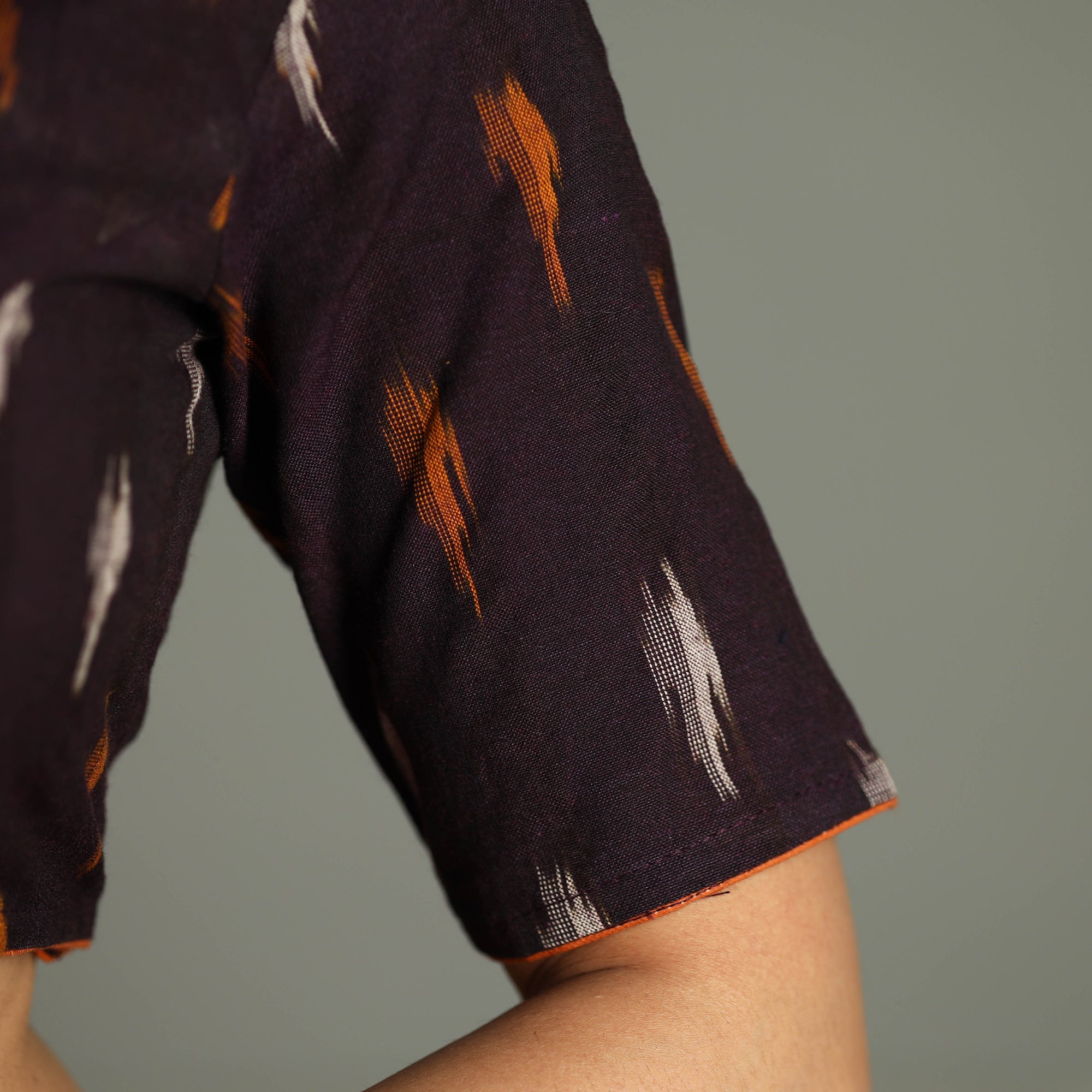 This pochampally ikat cotton stitched blouse is crafted with fine quality cotton fabric, ensuring comfort and breathability throughout the day. It features elegant half sleeves that provide balanced coverage, making it perfect for any occasion. The hook lock adds convenience and allows for easy wear and removal. With its traditional pochampally ikat design, this blouse adds a touch of cultural charm to your outfit.
