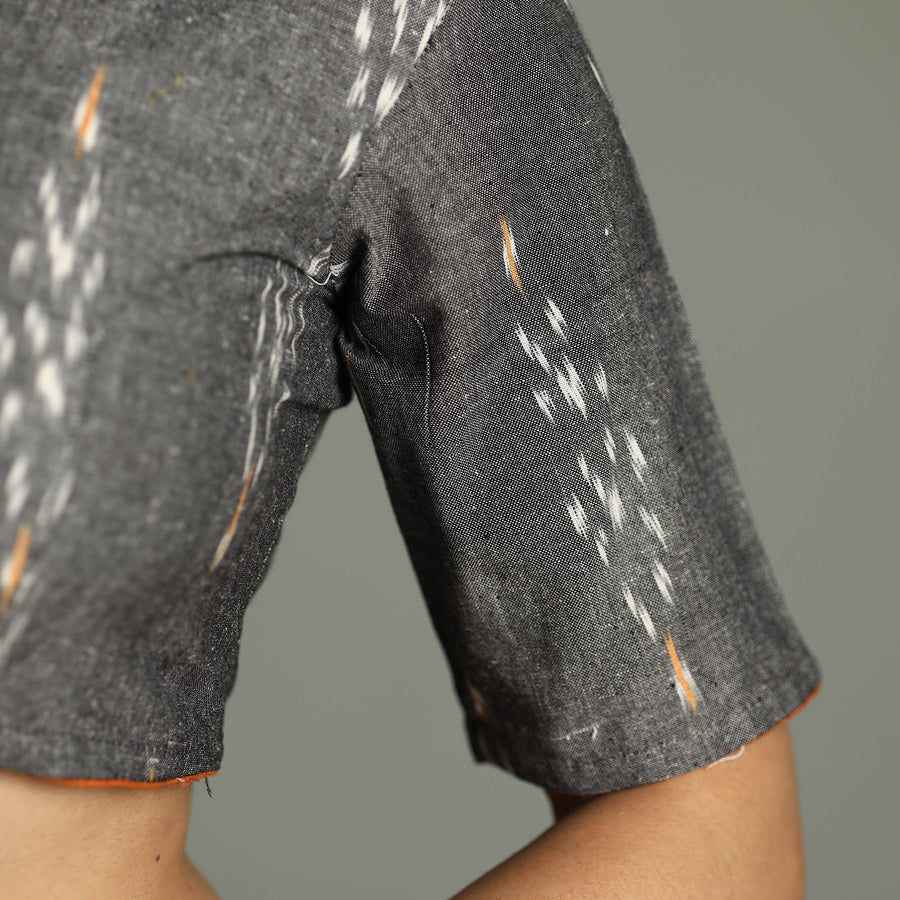 This pochampally ikat cotton stitched blouse is crafted with fine quality cotton fabric, ensuring comfort and breathability throughout the day. It features elegant half sleeves that provide balanced coverage, making it perfect for any occasion. The hook lock adds convenience and allows for easy wear and removal. With its traditional pochampally ikat design, this blouse adds a touch of cultural charm to your outfit.
