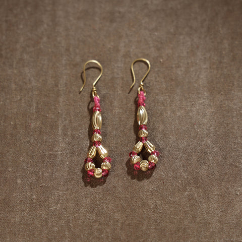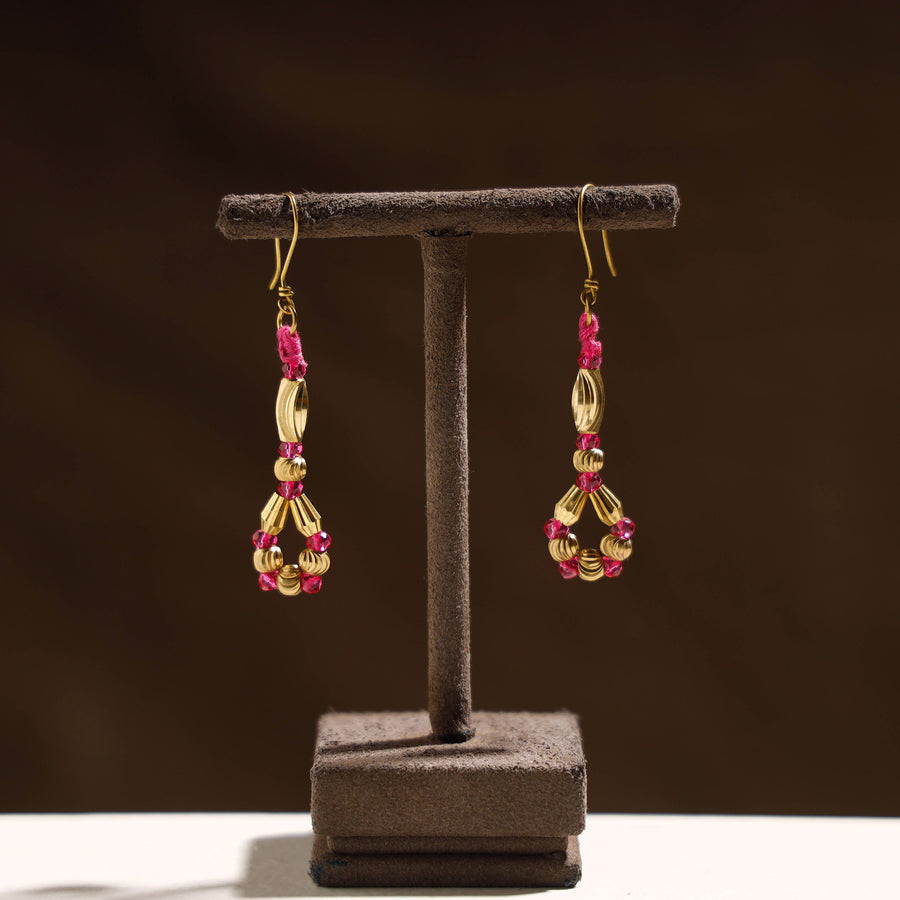 Multicolor handcrafted brass metal alloy dokra beads & threadwork earrings handmade by tribes. Dokra system of metal casting is said to be the oldest form of metal casting and is technically known as ‘cire perdue’ or lost wax process. The technique of casting revolves round replacement of wax with molten metal by the traditional hollow casting method. Very intense process of Dhokra casting is currently practiced in tribal areas of India mostly around Chhattisgarh and Orissa.
