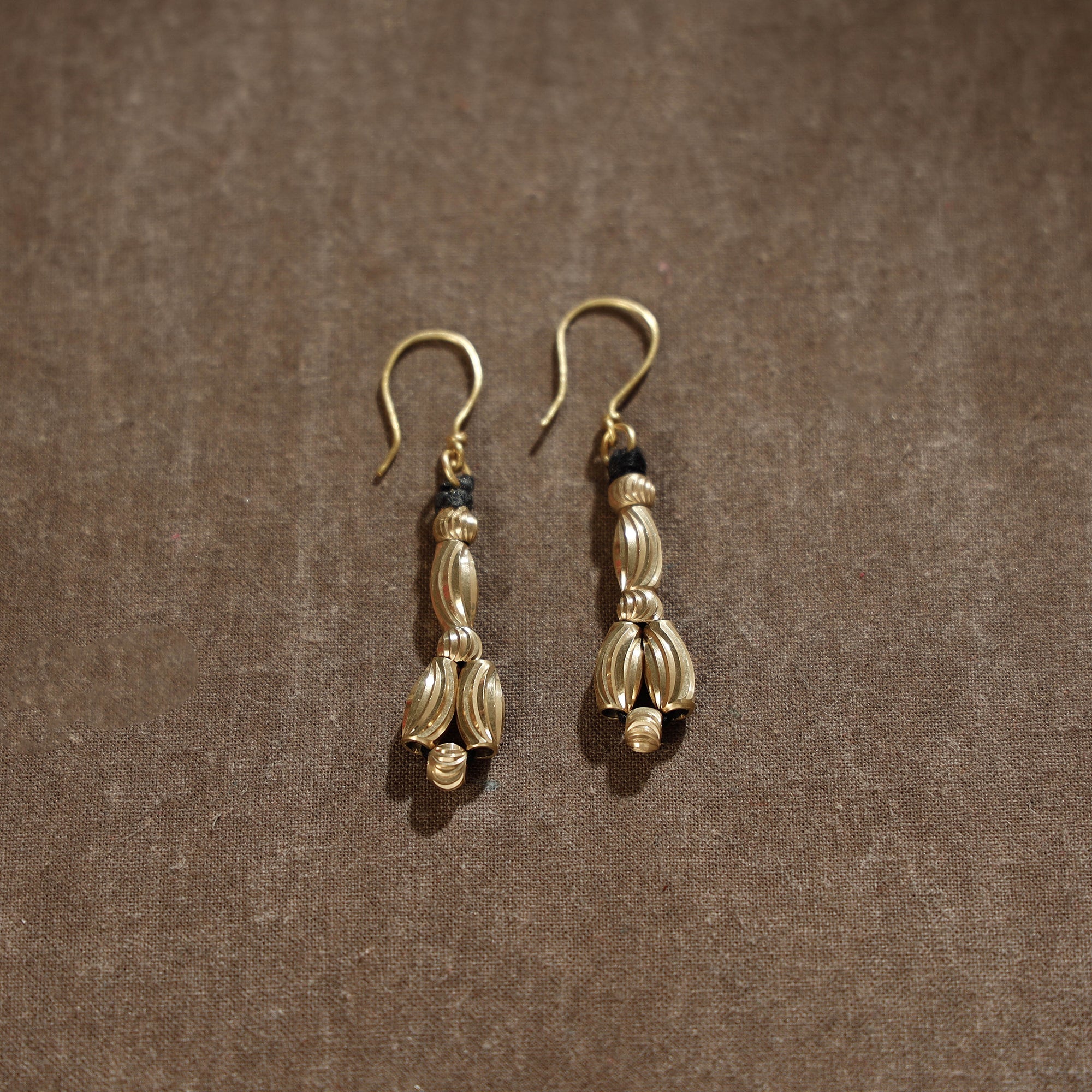 Yellow handcrafted brass metal alloy dokra beads & threadwork earrings handmade by tribes. Dokra system of metal casting is said to be the oldest form of metal casting and is technically known as ‘cire perdue’ or lost wax process. The technique of casting revolves round replacement of wax with molten metal by the traditional hollow casting method. Very intense process of Dhokra casting is currently practiced in tribal areas of India mostly around Chhattisgarh and Orissa.