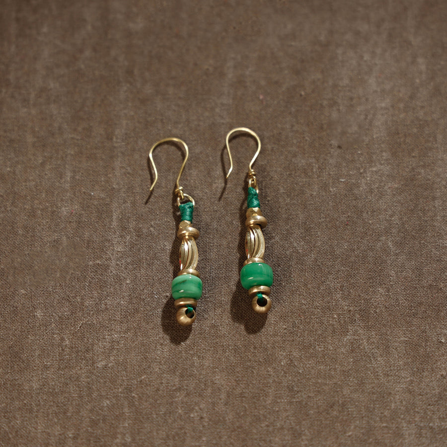 Multicolor handcrafted brass metal alloy dokra beads & threadwork earrings handmade by tribes. Dokra system of metal casting is said to be the oldest form of metal casting and is technically known as ‘cire perdue’ or lost wax process. The technique of casting revolves round replacement of wax with molten metal by the traditional hollow casting method. Very intense process of Dhokra casting is currently practiced in tribal areas of India mostly around Chhattisgarh and Orissa.