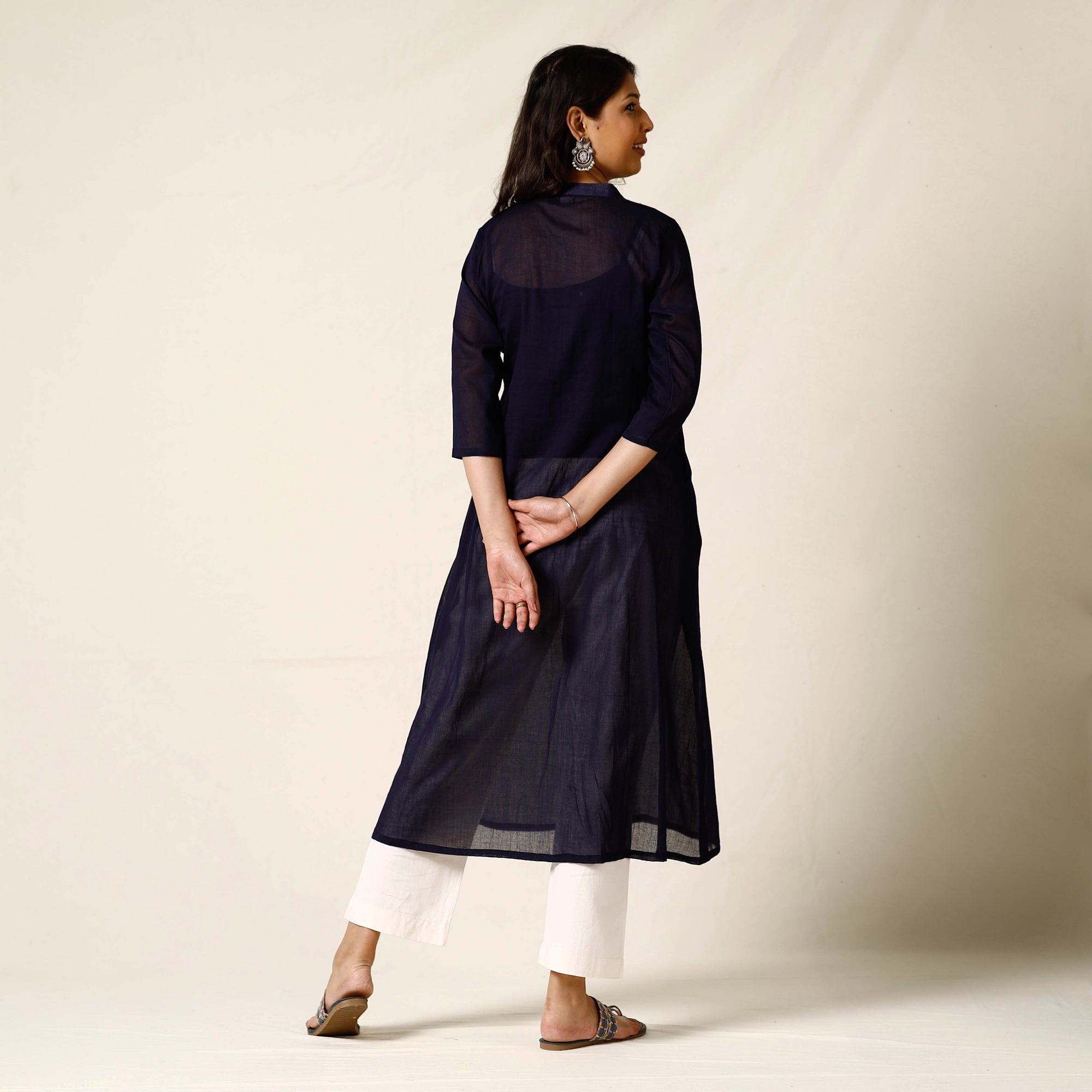 This plain dyed mulmalai cotton long kurta is uniquely designed to make you look and feel beautiful. It features a one-side pocket and is made from comfortable mul cotton fabric, ensuring ease and comfort throughout the day. Each piece is meticulously handcrafted by skilled artisans, showcasing their artistry and attention to detail. Mulmalai celebrates the beauty of simplicity, offering a collection that embodies grace, comfort, and effortless style. Embrace the softness and breathability of mulmul fabric while indulging in the sheer joy of wearing handmade creations. Discover the allure of Mulmalai and adorn yourself with the magic of artisanal craftsmanship.